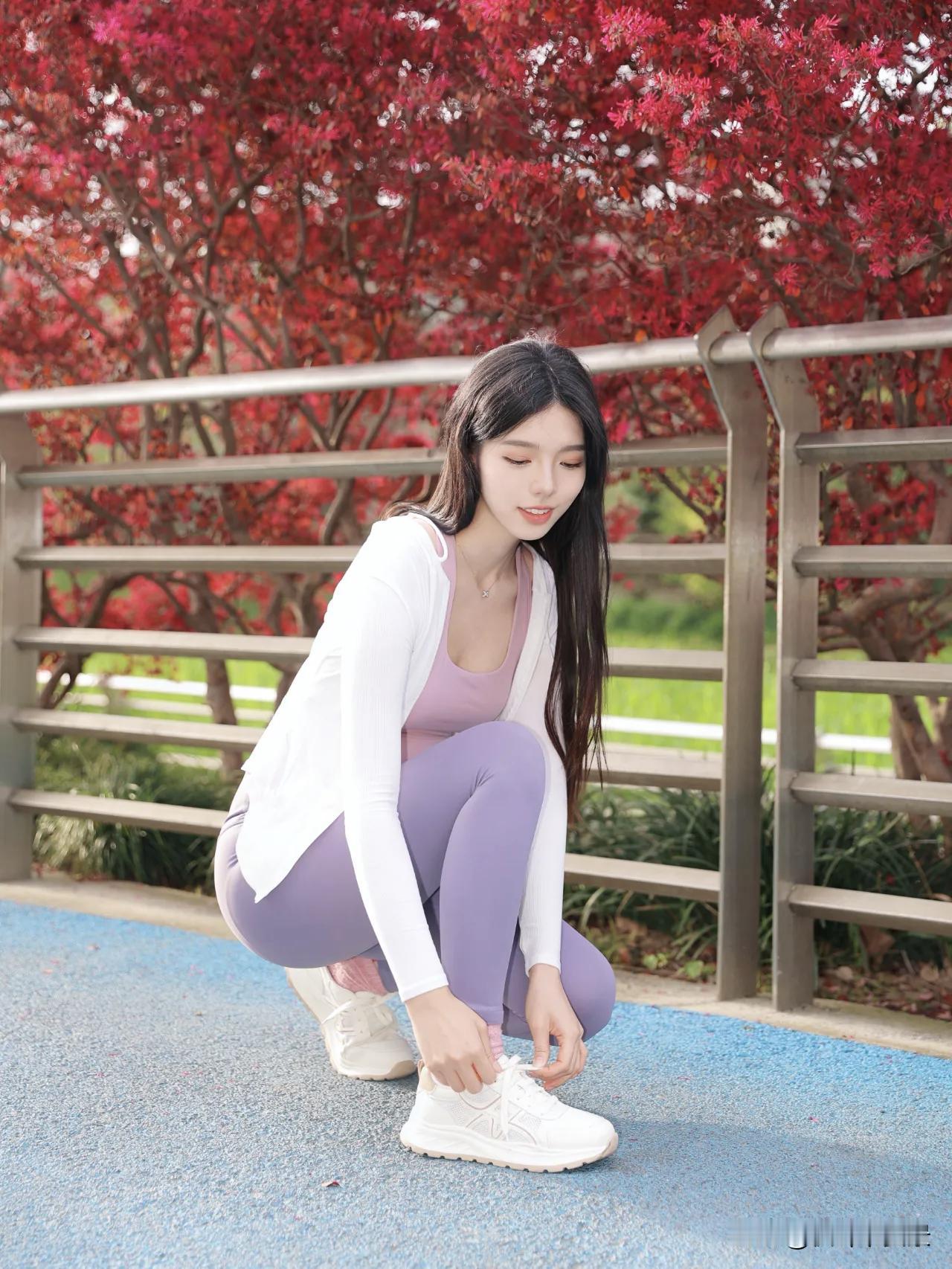 枫叶🍁|街角运动风拍照,8个动作拍出春日轻盈感,粉背心+紫灰瑜伽裤什么样的女人才能让你心动 你在哪可以拍一张路过的风景照吗 高雅气质美女 女人颜值重要还是穿搭重要? 手机拍照留下美好瞬间。 什么样的女生有魅力?
