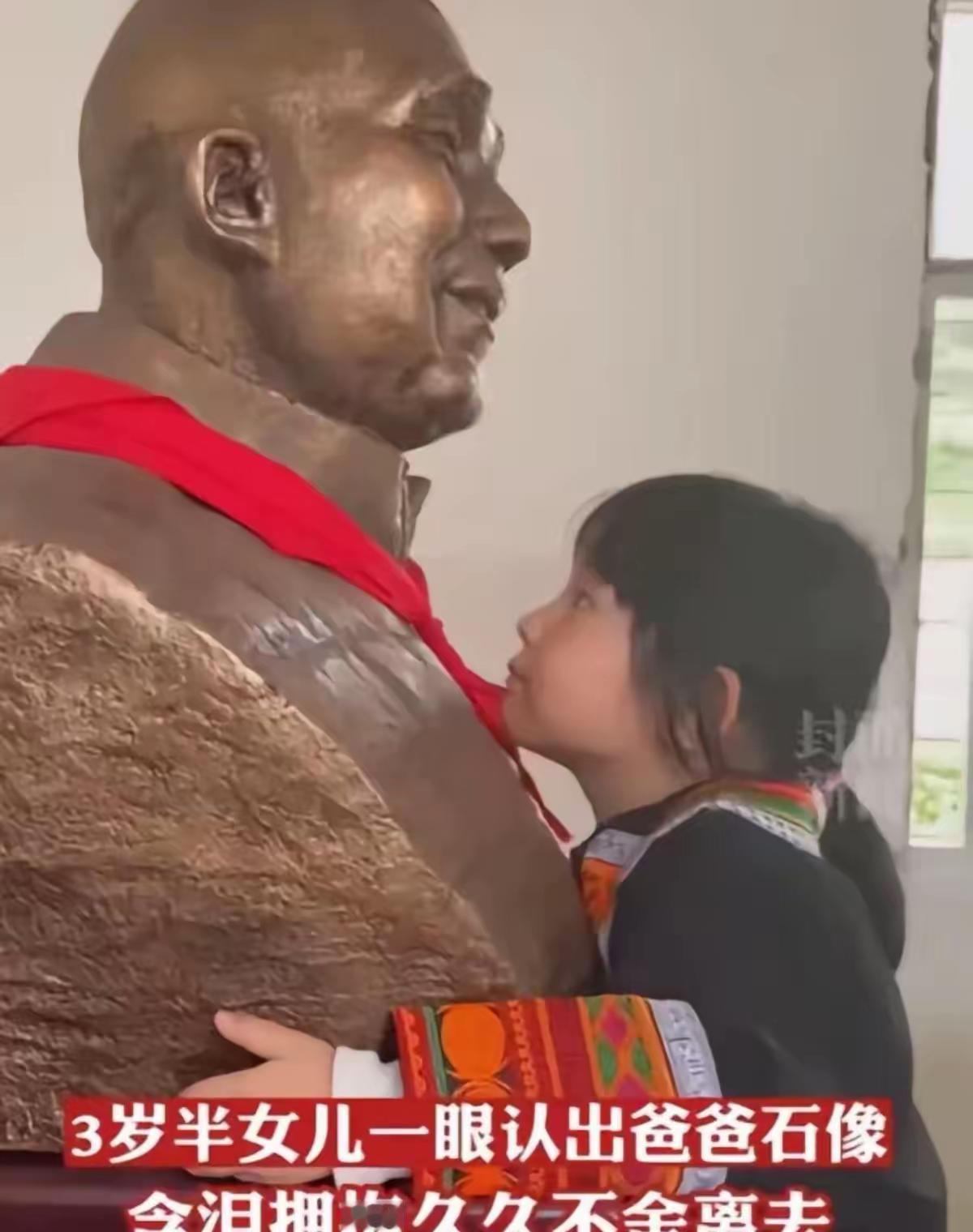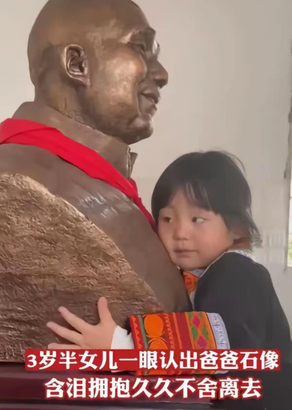 妈妈吴美丽这次带培培来大凉山,本意只是让她看看爸爸拼尽全力守护过的地方,看看他走过的山路、住过的村庄。她甚至没敢提前告诉孩子这里有爸爸的雕像,怕孩子太小接受不了。可她低估了血浓于水的本能。哪怕隔着冰冷的石头,哪怕只在照片里见过,培培还是一眼就认出了那是她的爸爸。那种刻在骨子里的依恋,不需要语言翻译。