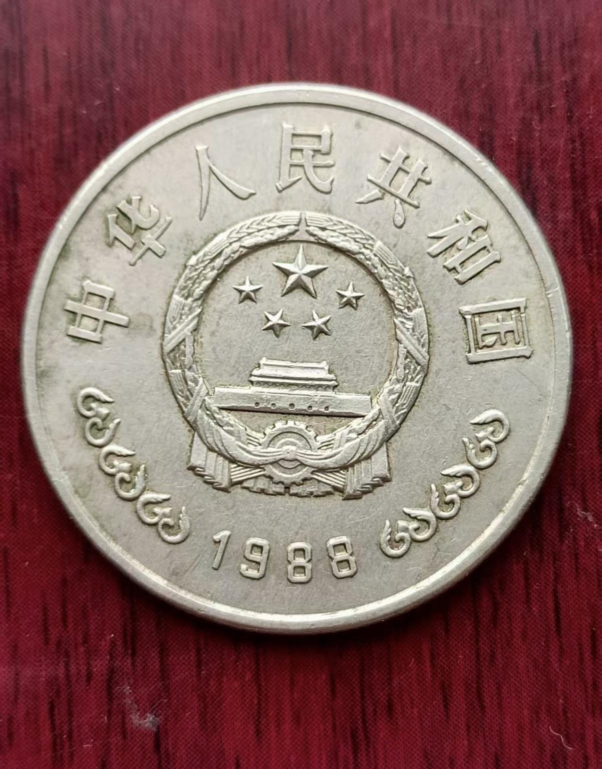 我这枚纪念币是上个世纪90年代偶得的,可能是找零,也可能是朋友随手就给到我手里了。时间太长也忘记了。平时也不保养,就是手盘展示,所以看上去就比较脏。