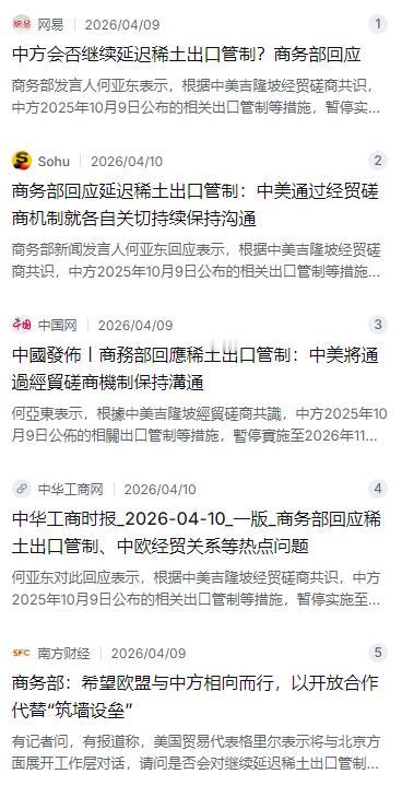 还有一层让美国坐不住的——4月10日,也就是商务部表态的第二天,包钢股份和北方稀土两家龙头企业几乎同步发了公告,宣布从2026年第二季度起调整价格。市场闻风而动,稀土价格应声上涨。这等于在倒计时旁边又加了一条隐形条款:管制暂时停了,但价格可没说不动。