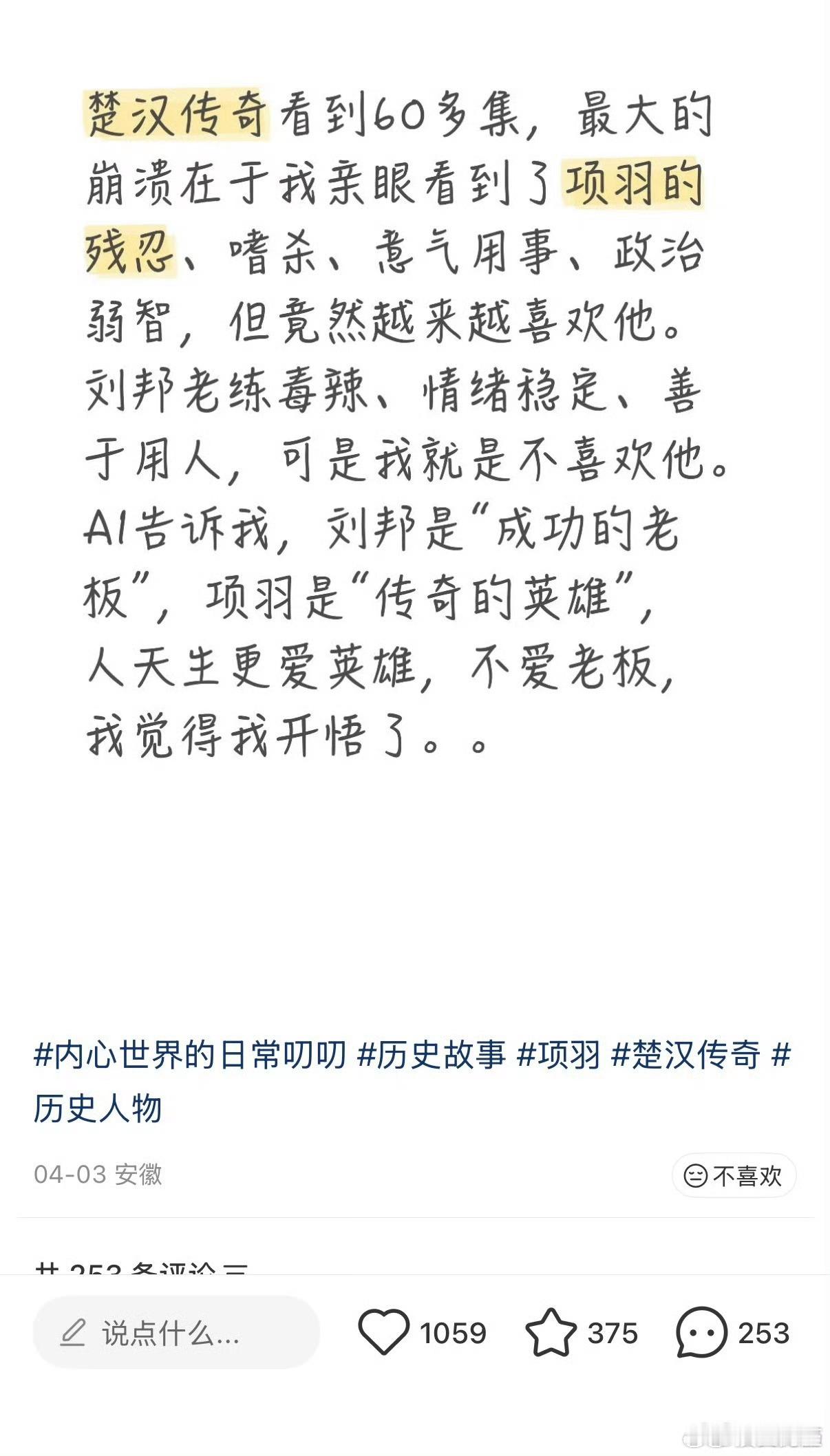突然意识到,项羽为什么明明输了天下,但是大家记了他几千年!我觉得原因如下,1.鸿