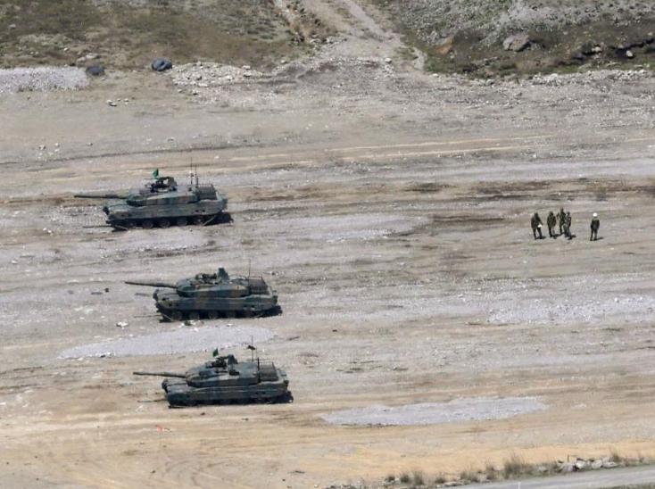 4月21日的日本大分县陆上自卫队“日出生台演习场”上,士兵们各就各位,按部就班地进行着分内的演习。