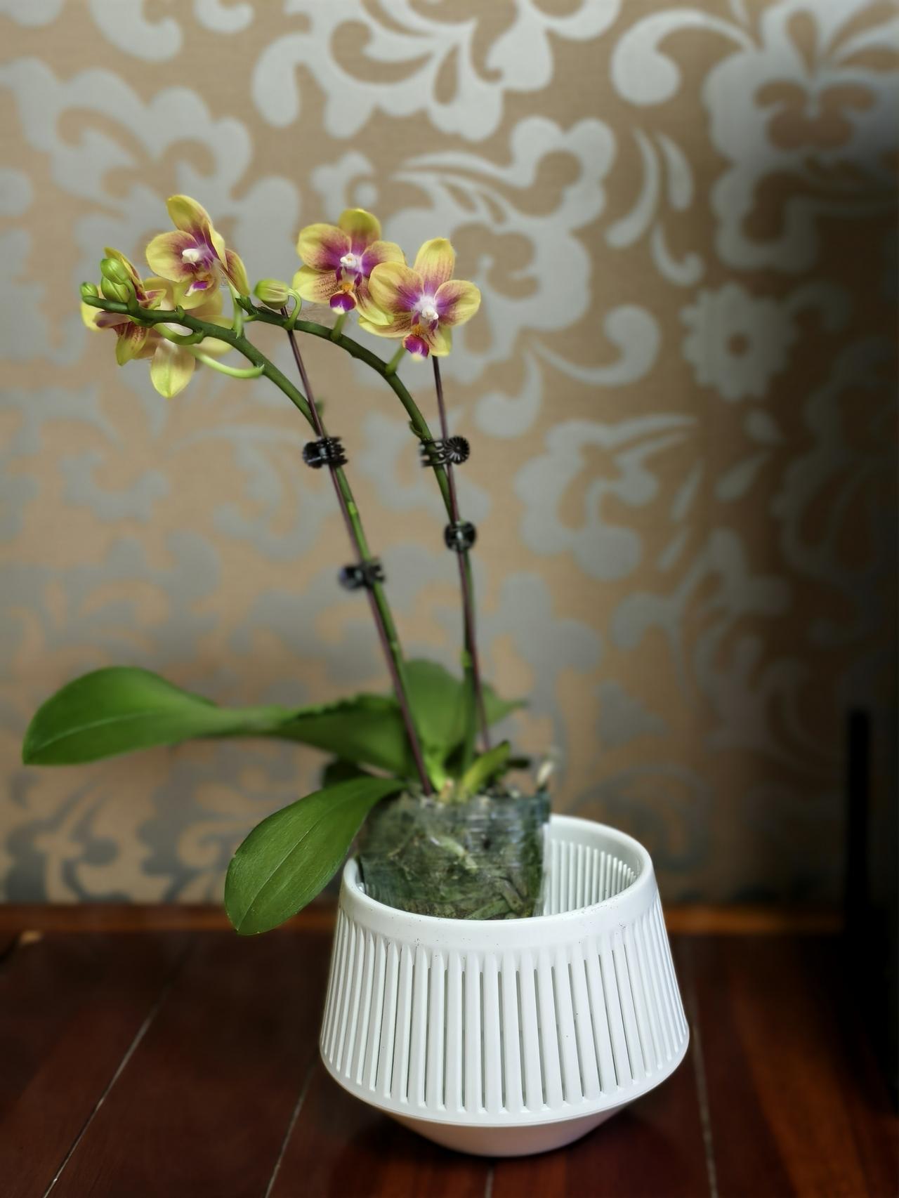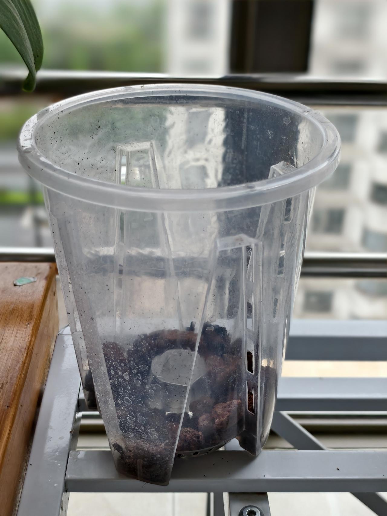 为了养好蝴蝶兰我买了3种盆。 图6是花友给我推荐的,控根青山盆,口径14cm。