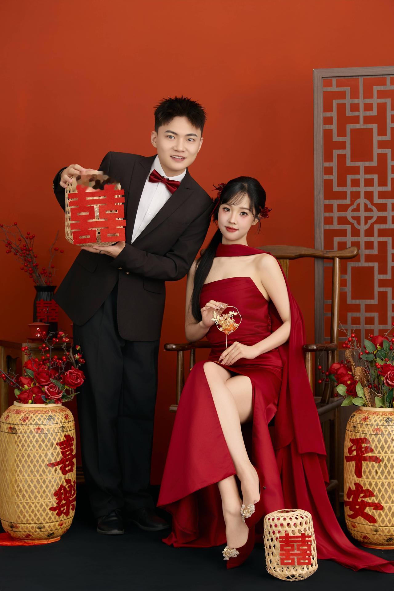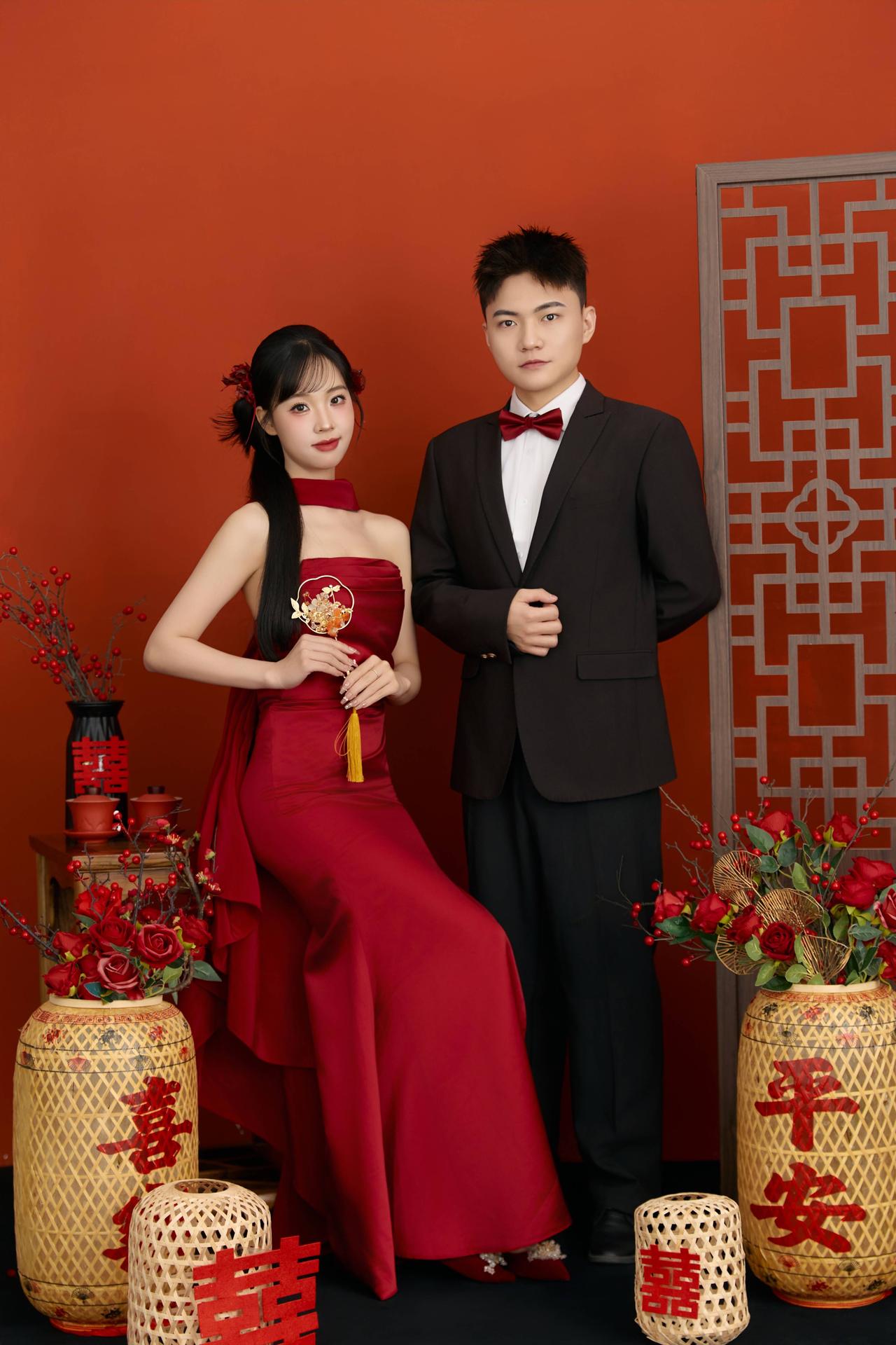 红妆对拜,一眼万年。❤️🎎 这组情侣红色中式写真,把东方婚嫁的浪漫刻进了骨子里。他身着暗纹红袍,你头戴金丝凤冠,红绸牵在手间,烛光映着双颊。一个对视是满目深情,一次执手是此生不渝。那种“喜气洋洋又庄重典雅”的国风氛围,真的太适合热恋中的你们了!想拍一组红红火火、甜而不腻的情侣照?红色中式必须安排,成片像从古装婚庆大典里走出来的画卷~🏮✨
