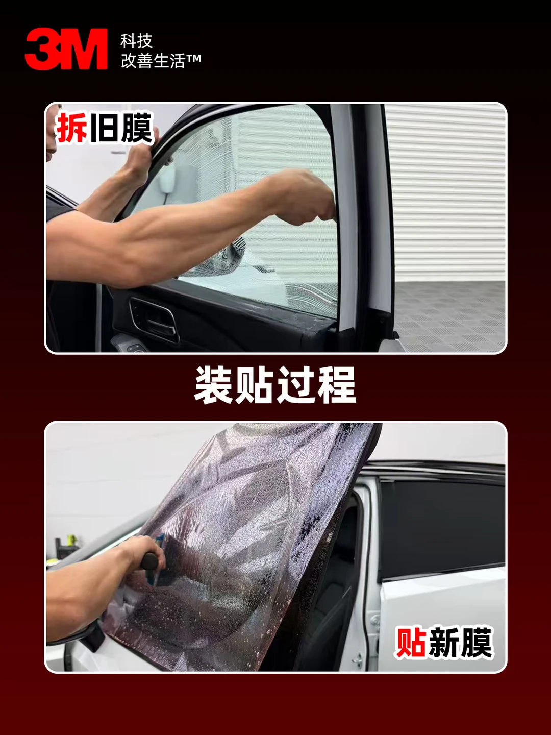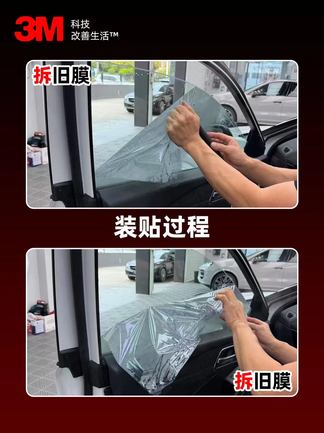 🧼 撕旧膜、贴新膜,对工艺要求极高。作为3M的品牌店,我们坚持在标准的降尘车间内施工,确保在洁净的环境下,彻底清除旧胶。