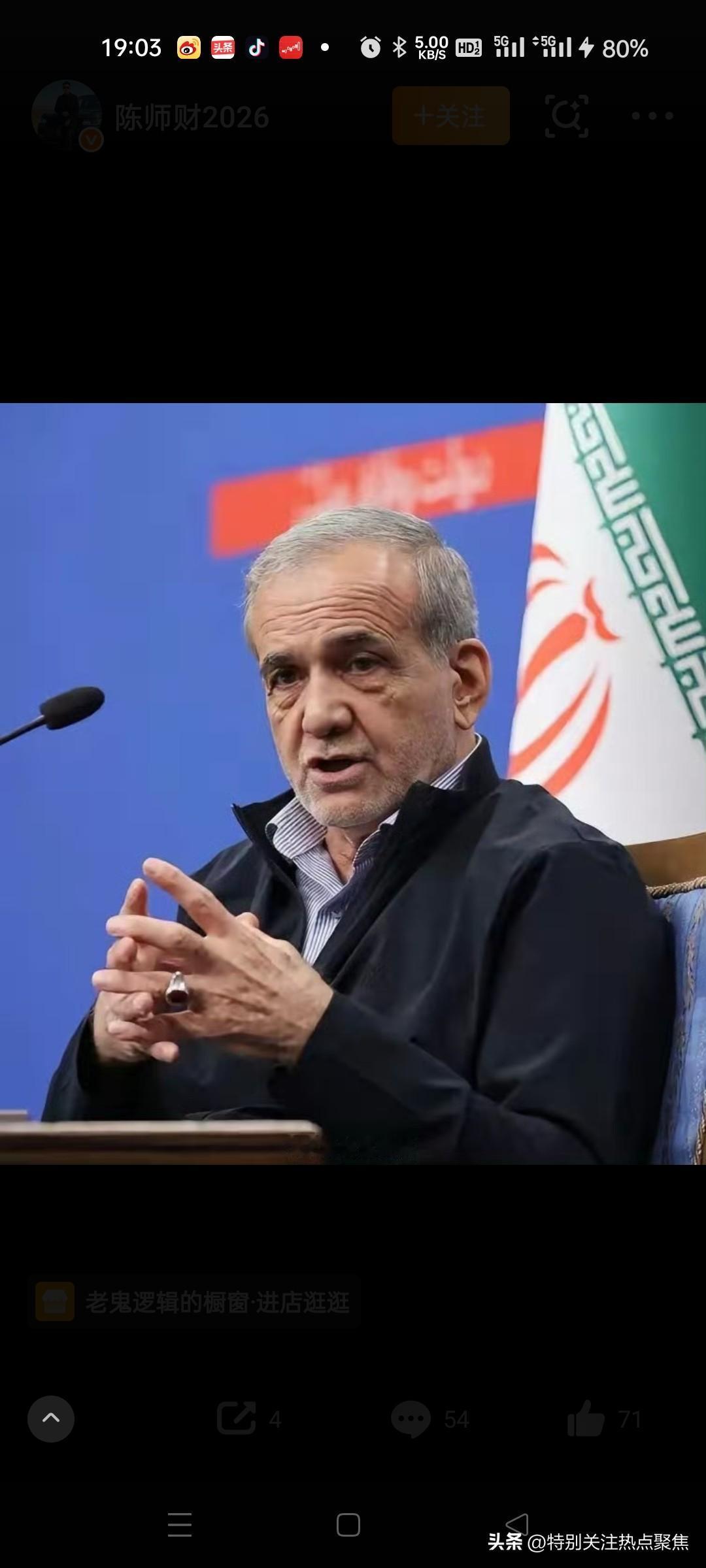 伊朗总统所受的“窝囊气”本质上是体制性矛盾:在神权政体下,总统只是行政执行者,革命卫队直接听命于最高领袖。当军方与总统路线冲突时,军方握有实质否决权。而外部高压进一步激化内部分裂,使伊朗在“战与和”的钢丝上艰难平衡。 伊朗停火条件 伊朗怒怼美国 伊朗外交大转向 伊朗美以冲突 伊朗伊以冲突 伊朗最高领导层 伊朗怒怼西方 伊朗停火条件 伊朗怒怼美国 伊朗外交大转向 伊朗美以冲突 伊朗伊以冲突 伊朗最高领导层 伊朗怒怼西方