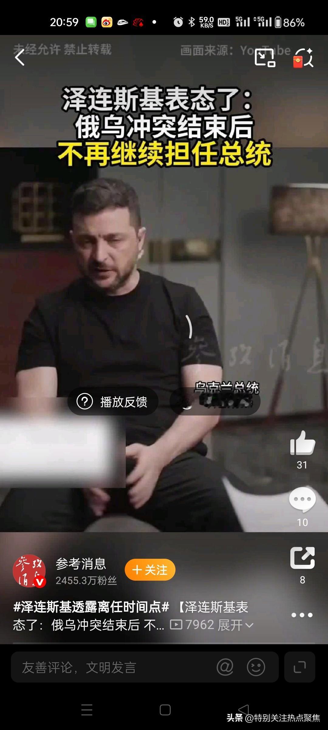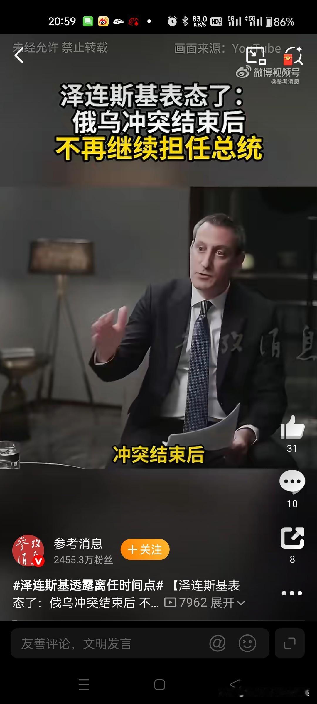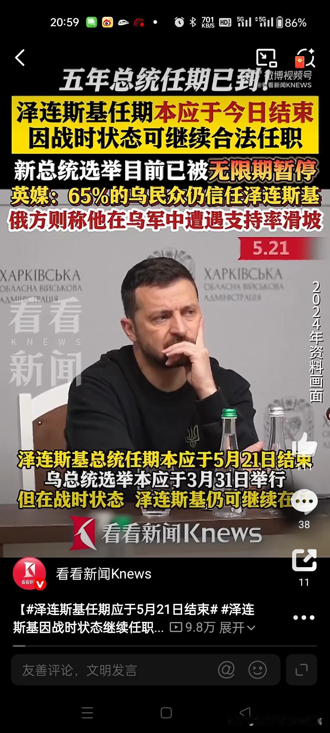泽连斯基的总统任期原定于2024年5月21日结束,但由于俄乌冲突引发的战时状态,乌总统选举未能如期举行,他得以继续留任。2025年9月25日,泽连斯基在接受采访时明确表示,他已做好在俄乌冲突结束后离任的准备,这意味着他的下台时间直接与冲突的解决挂钩。截至2026年4月21日,冲突仍在持续,俄军在前线推进攻势,因此泽连斯基尚未卸任,也未公布具体下台日期。 西方乌克兰联盟 美国乌克兰协议 泽连斯基腐败 特朗普怒批北约 特朗普自娱自乐 特朗普怒斥美国 欧洲对特朗普