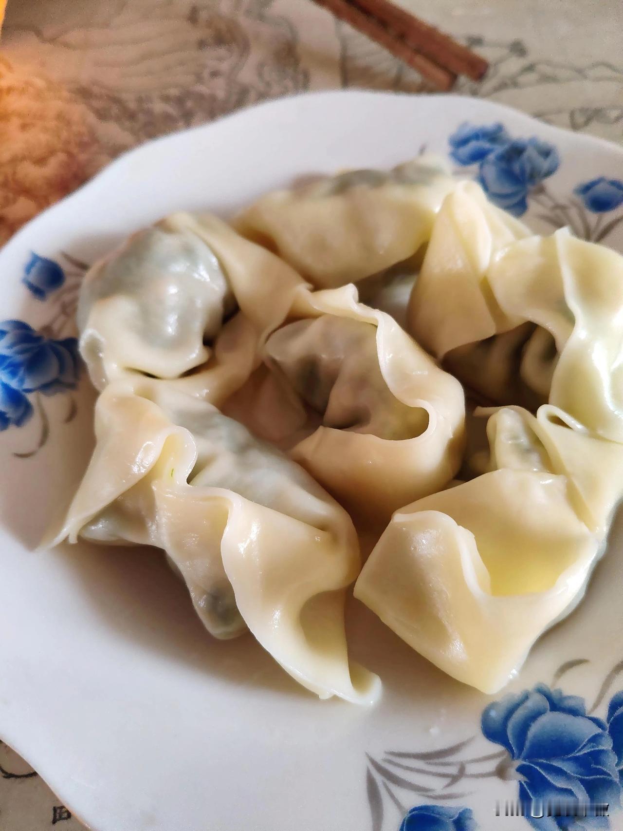 最近几天,网上曝光许多食品添加剂的案例,不敢再去外面吃了。今天自己在家里包馄饨。老头表扬我包得不错,一定要拍一张照片。煮熟了后还一直称赞好吃好吃!真难得!