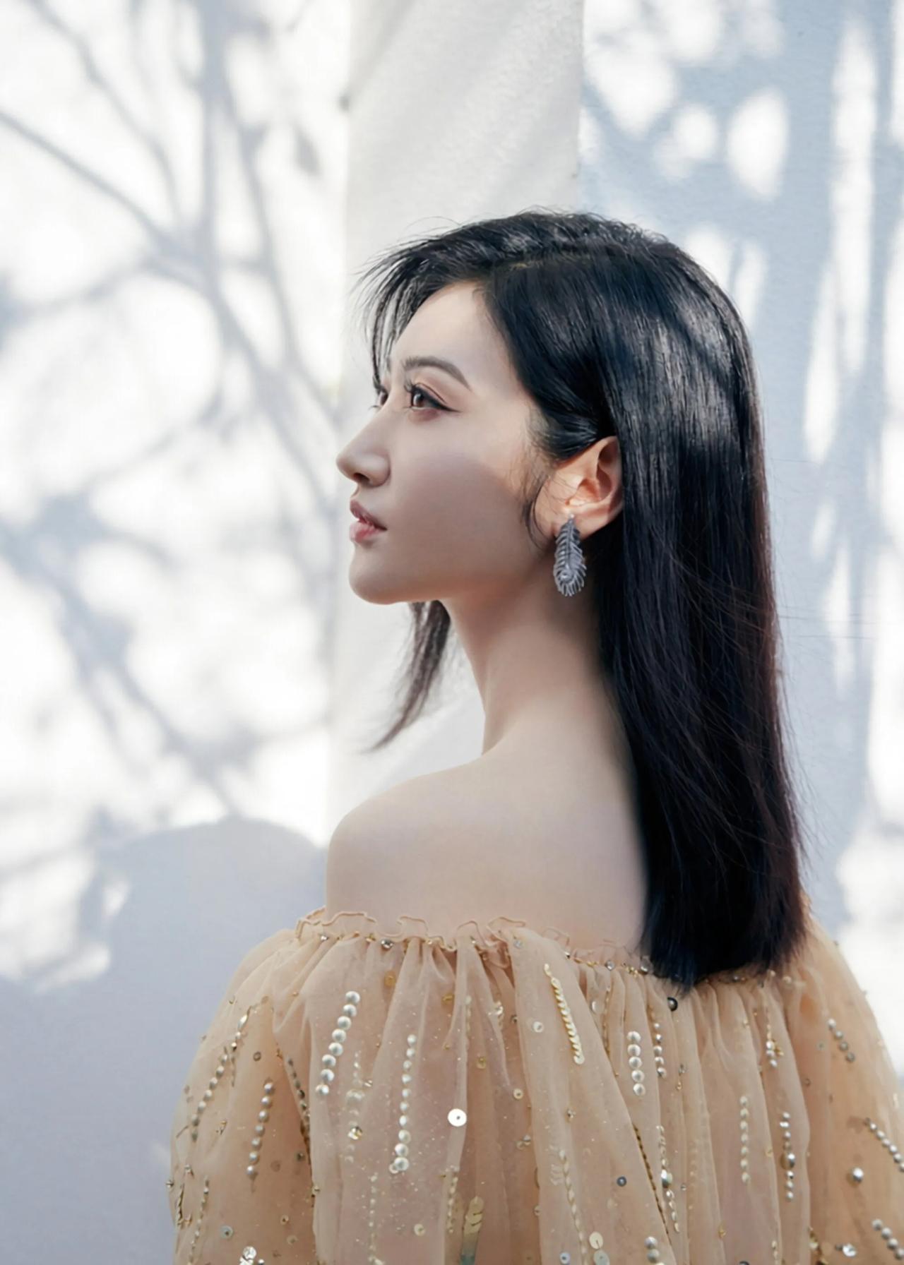 景甜这香槟纱裙,把江南的温柔穿在身上了✨ 景甜