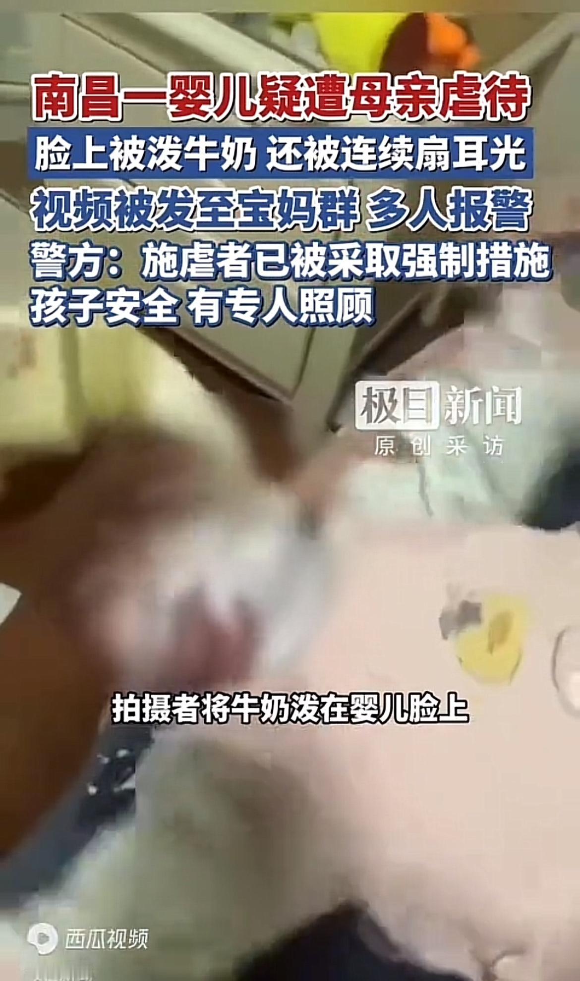 这段短短十几秒的视频,点开看一眼都让人揪心到发抖,更让人血压飙升的是,做出这一系列残忍举动的,竟是婴儿的亲生母亲。视频里的孩子还不会说话,只能用撕心裂肺的哭喊表达痛苦,小脸蛋涨得通红,牛奶顺着脸颊流进鼻腔、脖颈,呛得连连抽搐,可施虐者没有丝毫心软,反而一下接一下,狠狠掌掴婴儿稚嫩的脸颊,下手又重又狠,完全没有顾及这是自己十月怀胎生下的骨肉。