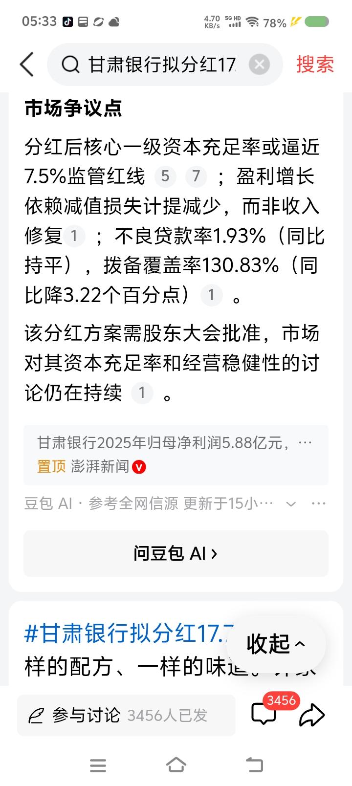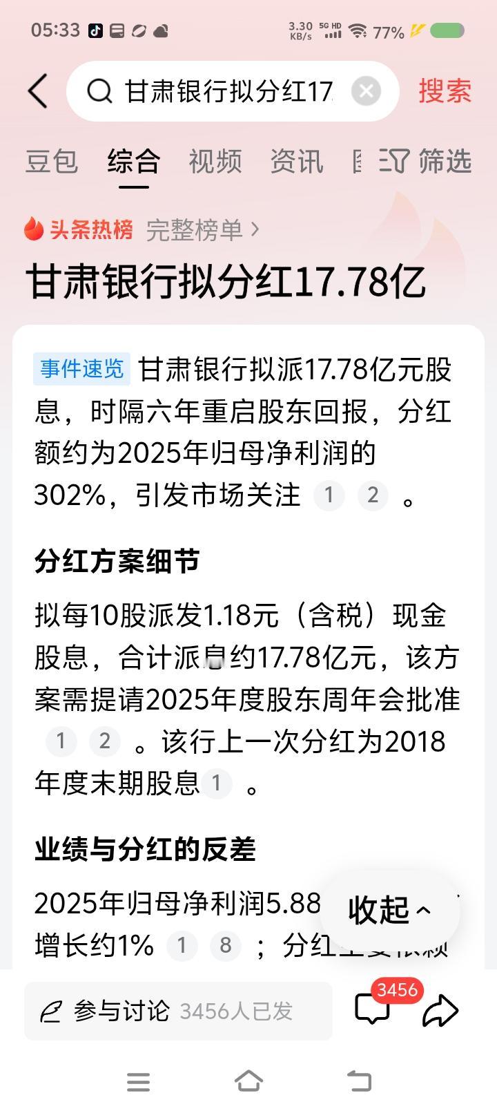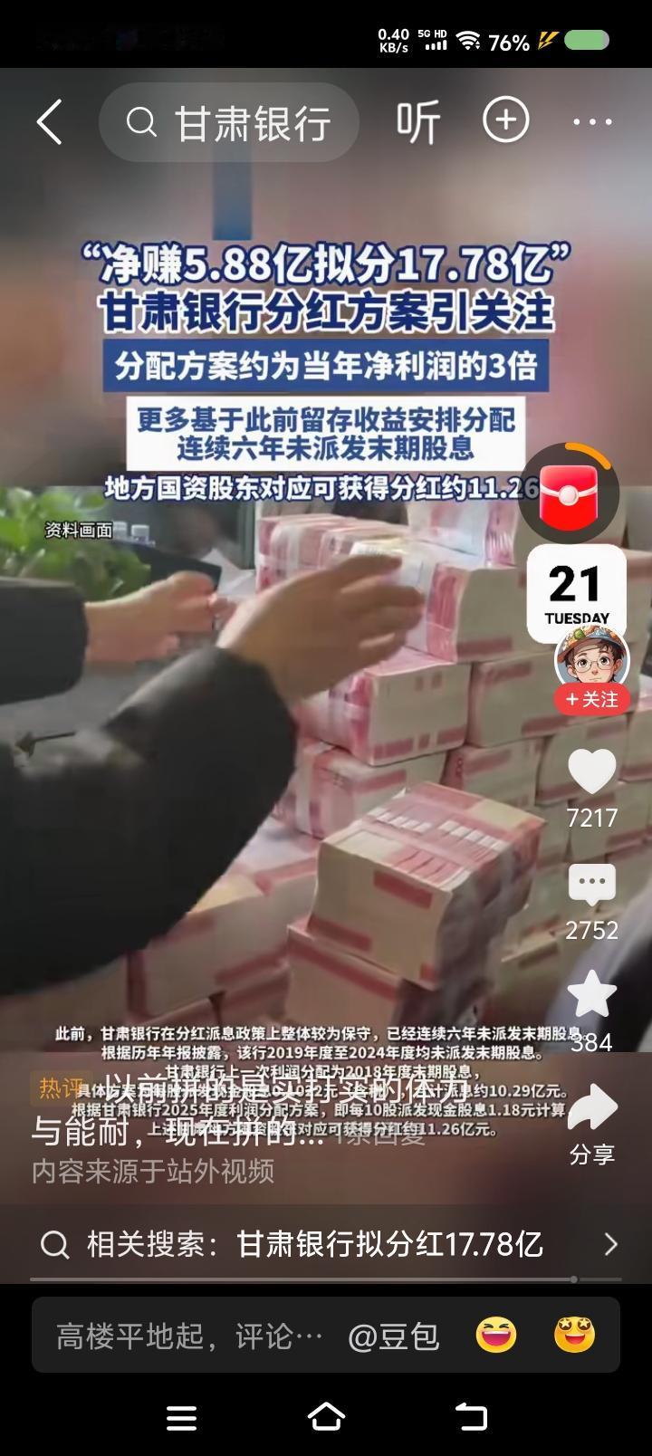 净赚5.88亿,却要分红17.78亿!甘肃银行这波操作直接炸了锅。相当于把当