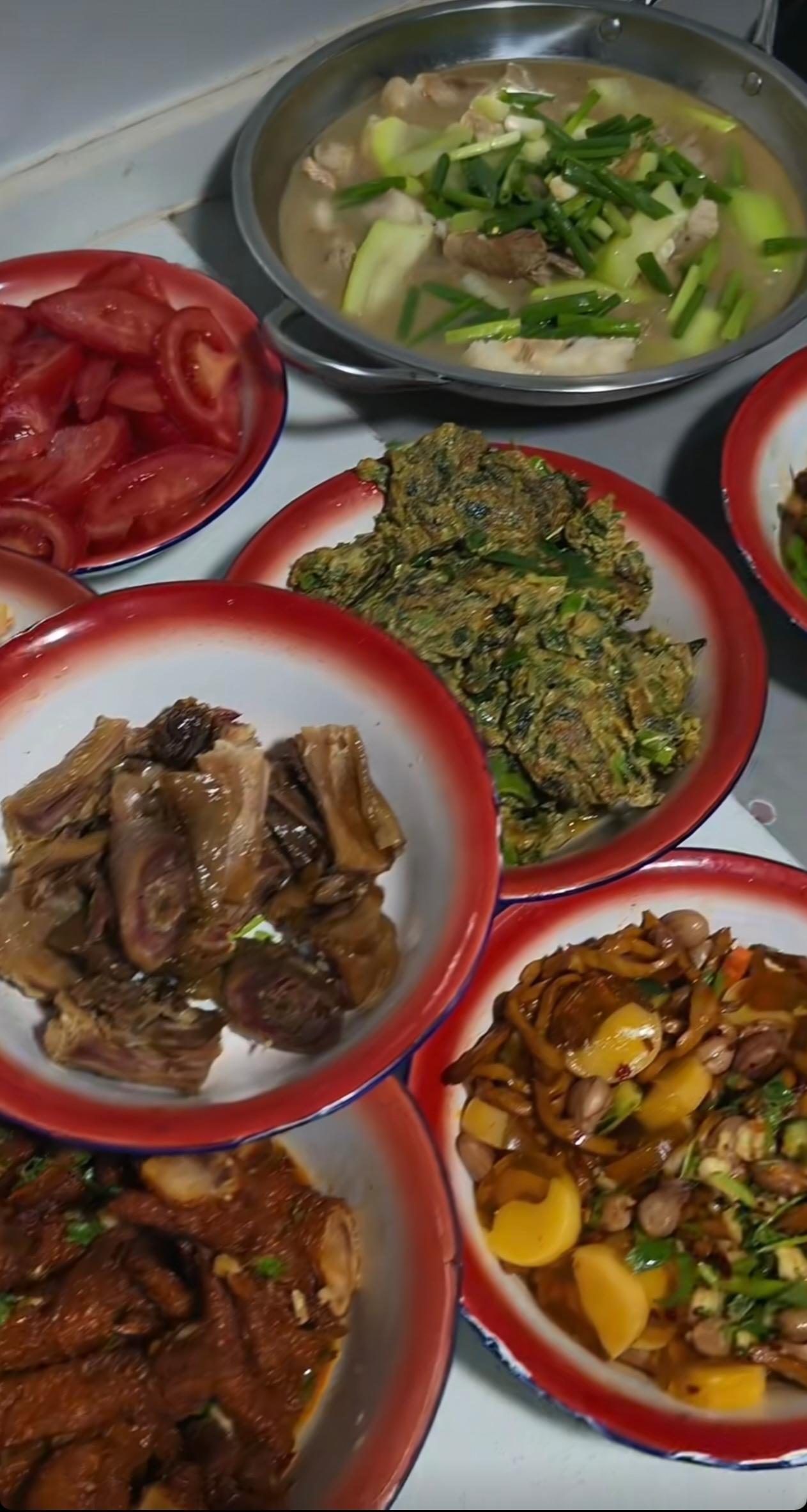 满满一大桌农家硬菜,全程没有多余调料,全靠食材本身撑住味道。自家散养的家禽、菜园现摘的青菜、风干入味的土腊肉,每一口都是地道原生态鲜香。