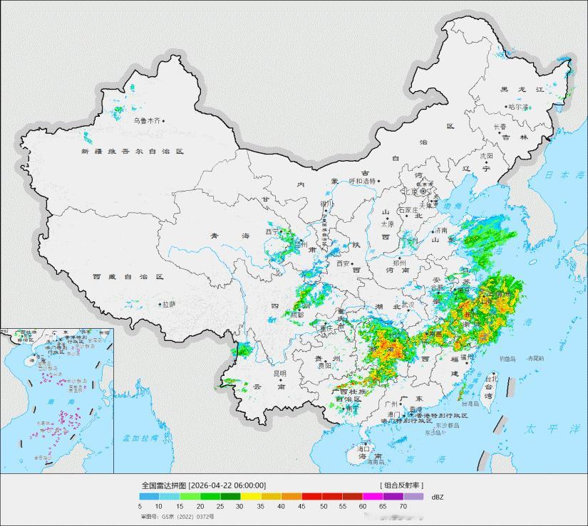 【强降雨和强对流】昨天到今晨,黄河以南出现大范围降雨,西藏东南部、广东东部、广西北部、湖南大部、江西中北部、安徽南部等地出现大雨-暴雨。总体看,主雨带位于江南,今晨雷达动画,也可以看到江南一带,典型的低涡切变线的降水形态。今后3天冷空气南下,推动切变线雨带南落。