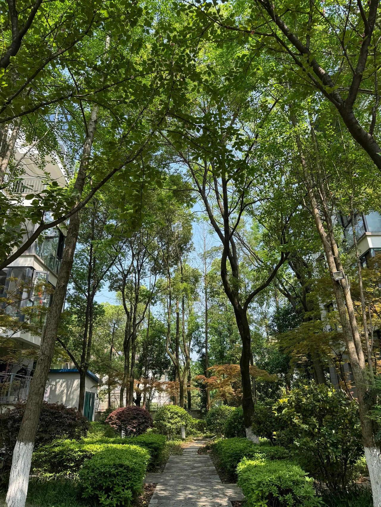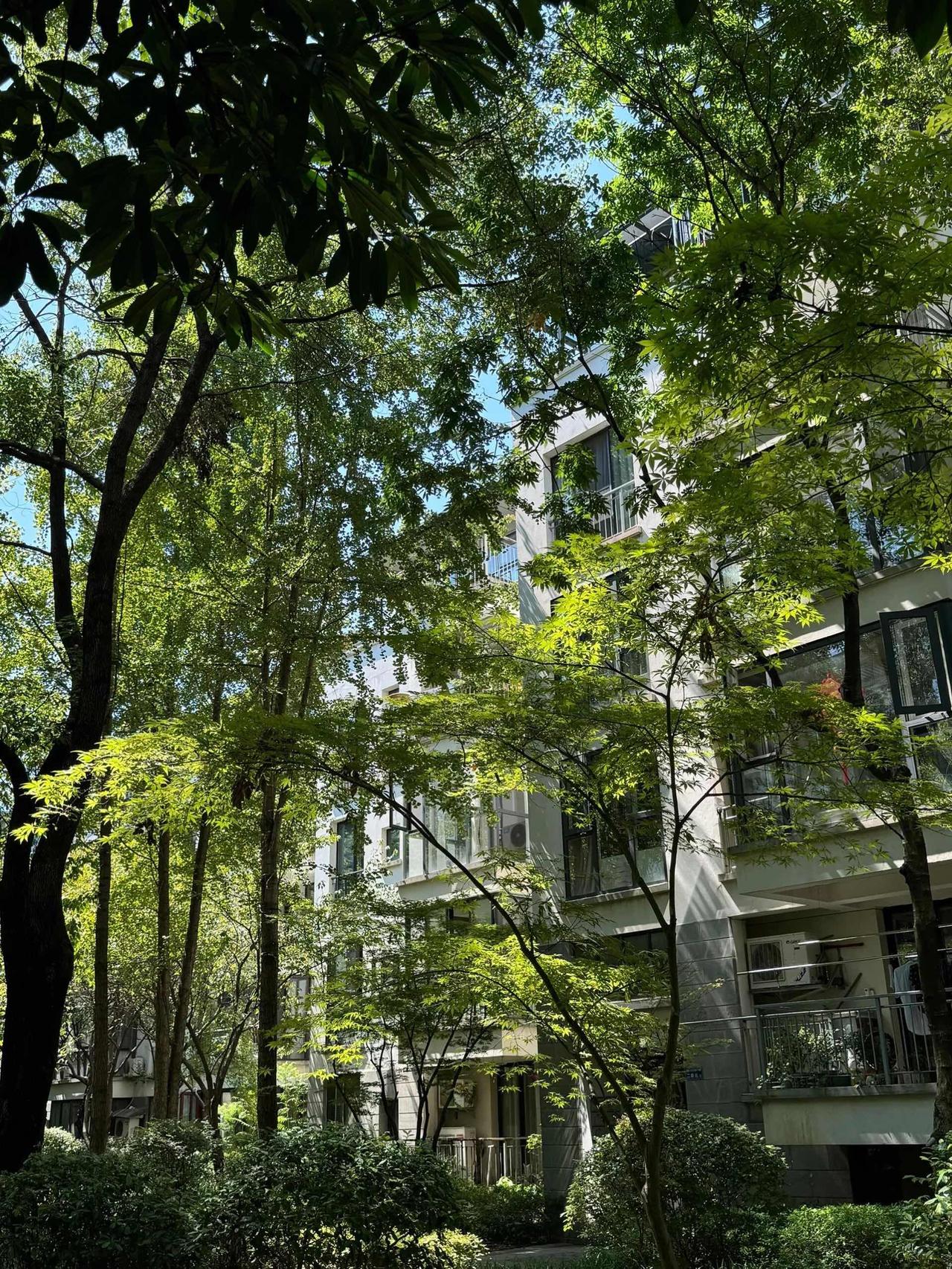小区不大,每栋楼都是独立的,楼与楼之间种满了树,从窗户望出去,满眼都是绿色,不是那种新楼盘里刚栽的小树苗,而是长了几十年的大树,有的已经超过了六层楼高,住在里面,真的像住在一个天然氧吧。
