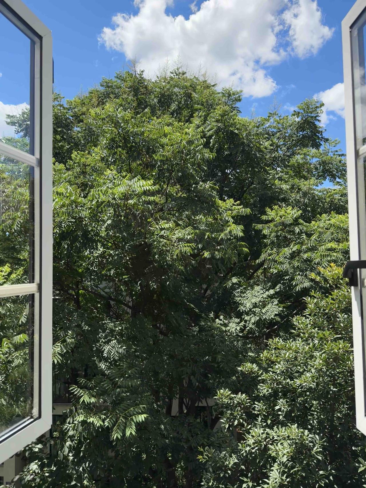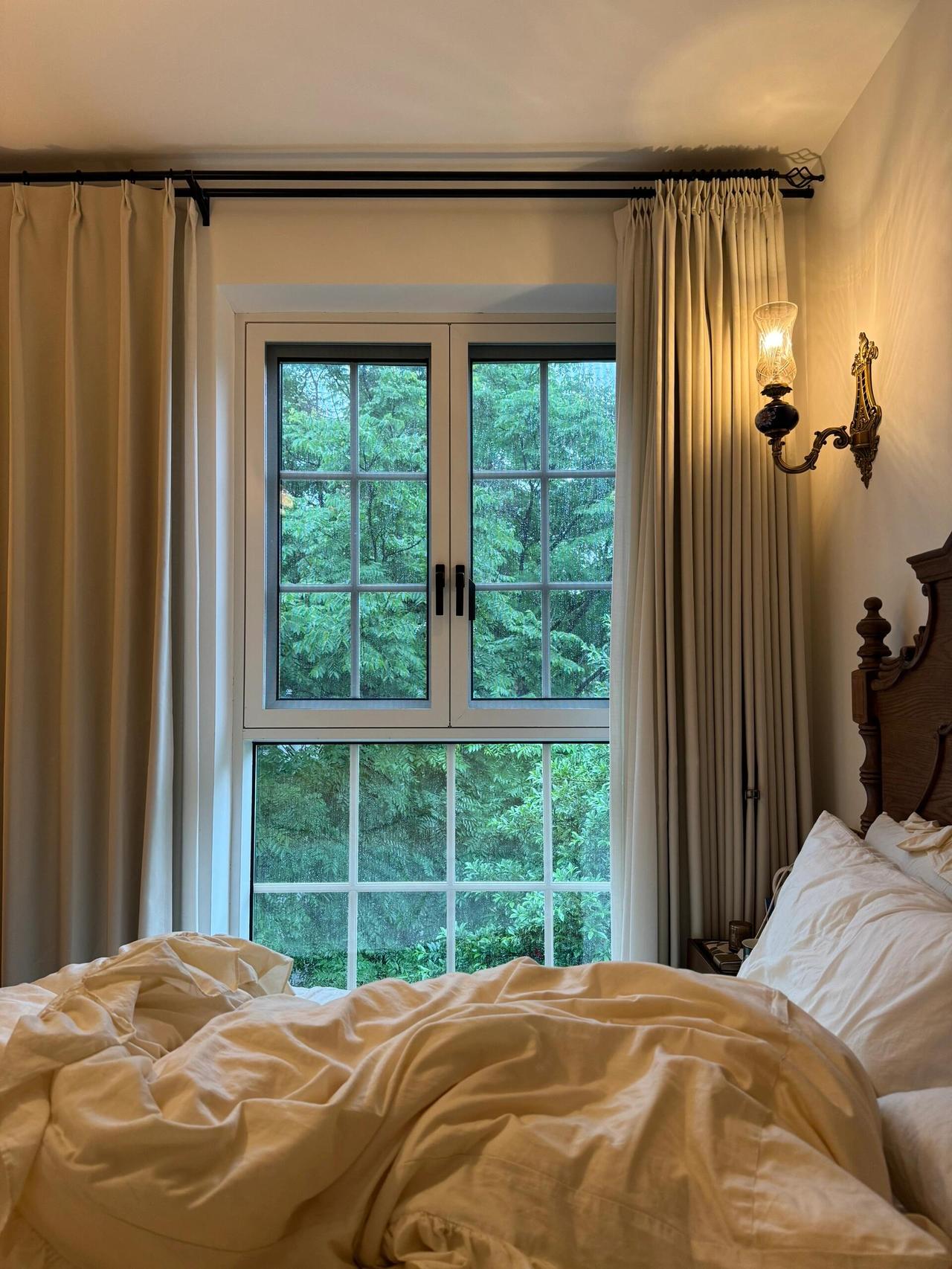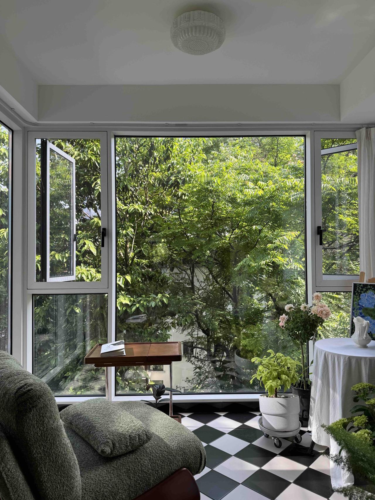 外立面本身就成了风景的一部分,家里不用费劲装饰,摆几件喜欢的家具就够了,被自然包裹的家,有一种天生的松弛感。每天推开窗,不是对面楼的墙壁,而是层层叠叠的树冠。
