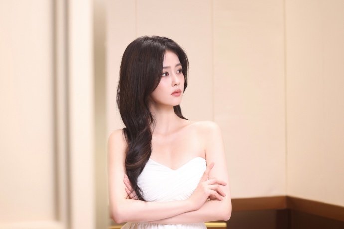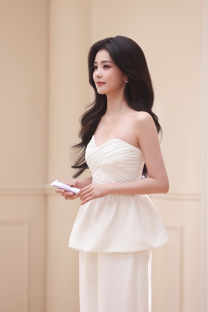 白鹿吊带鎏金裙 白鹿肌肤如缎 白鹿吊带鎏金裙,白鹿肌肤如缎,白色抹胸和吊带鎏金裙,好生反差感的白鹿上线,同样的美貌输出,谁能拒绝呢~