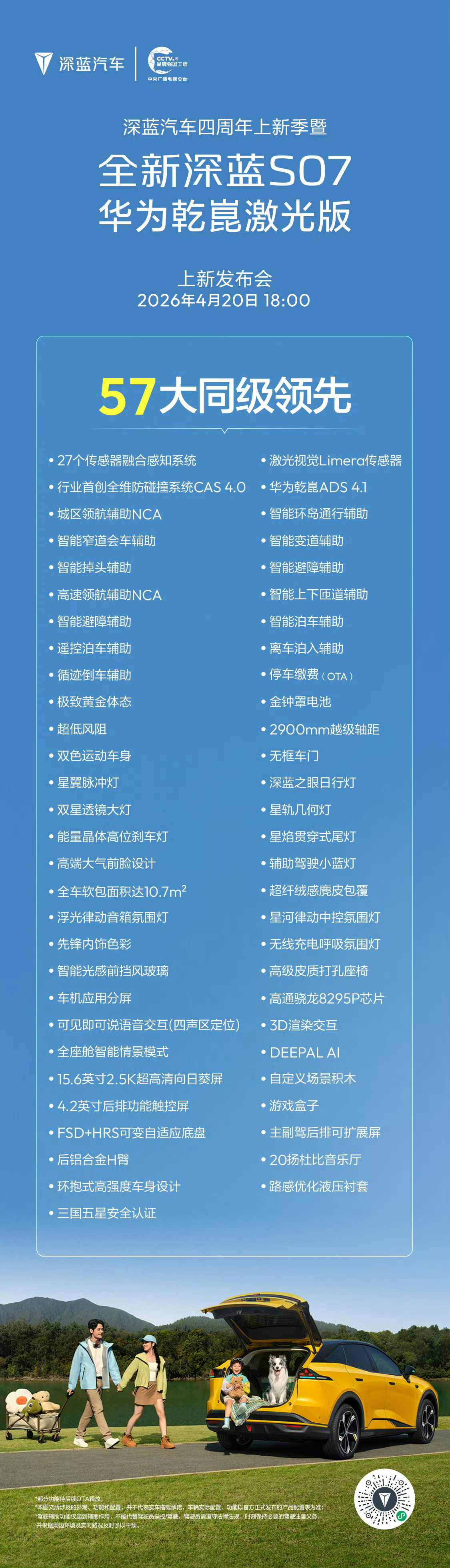 科技佳ZHJ深蓝S07把华为乾崑激光智驾打进20万内了!之前深蓝就把乾崑智驾拉到