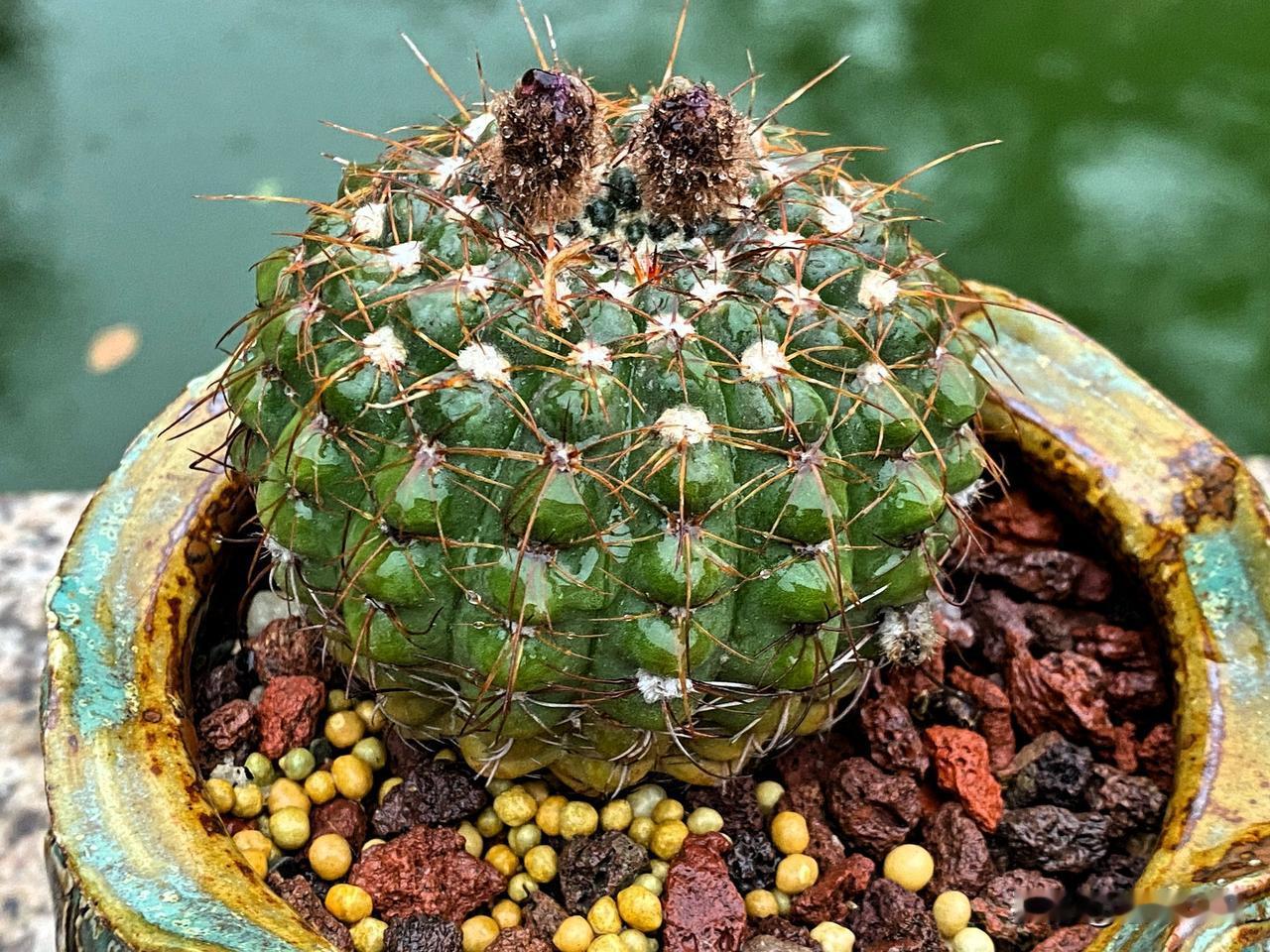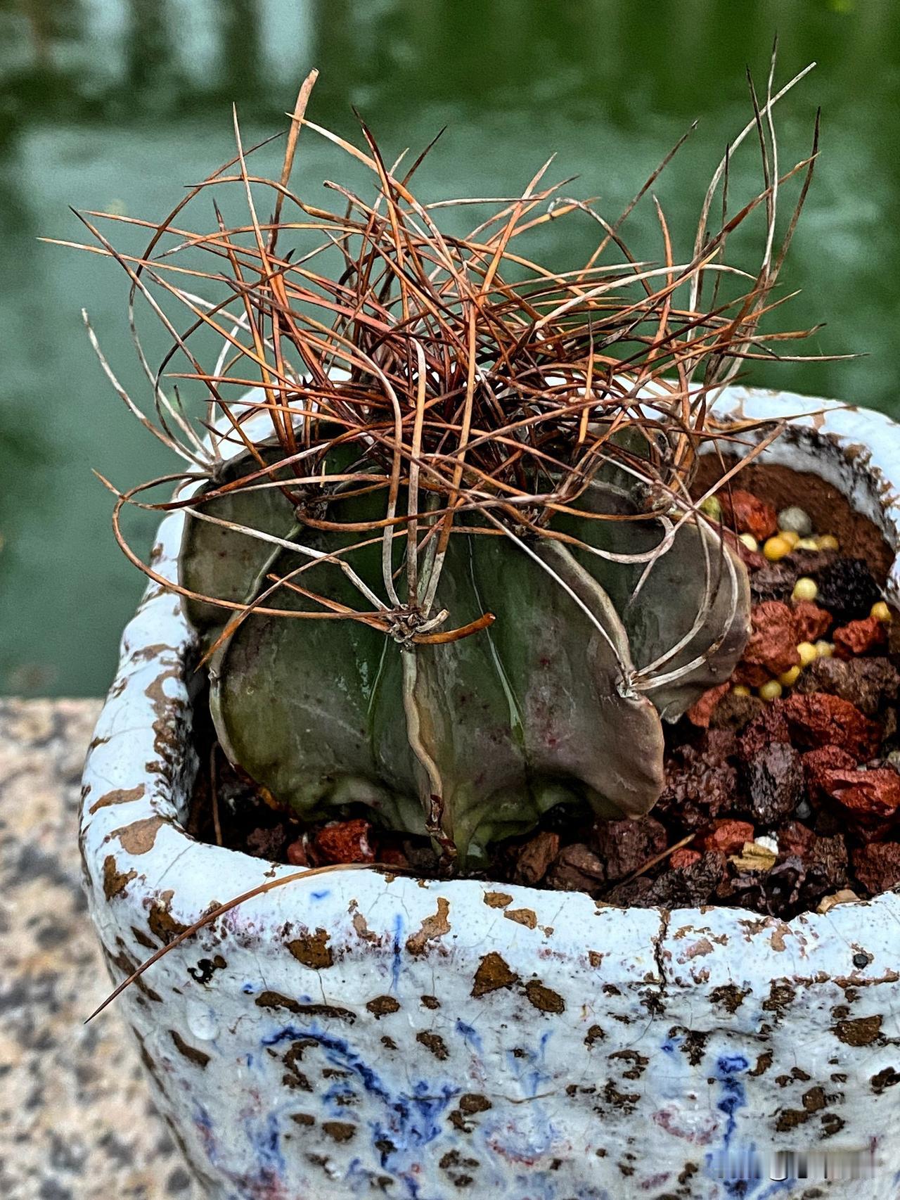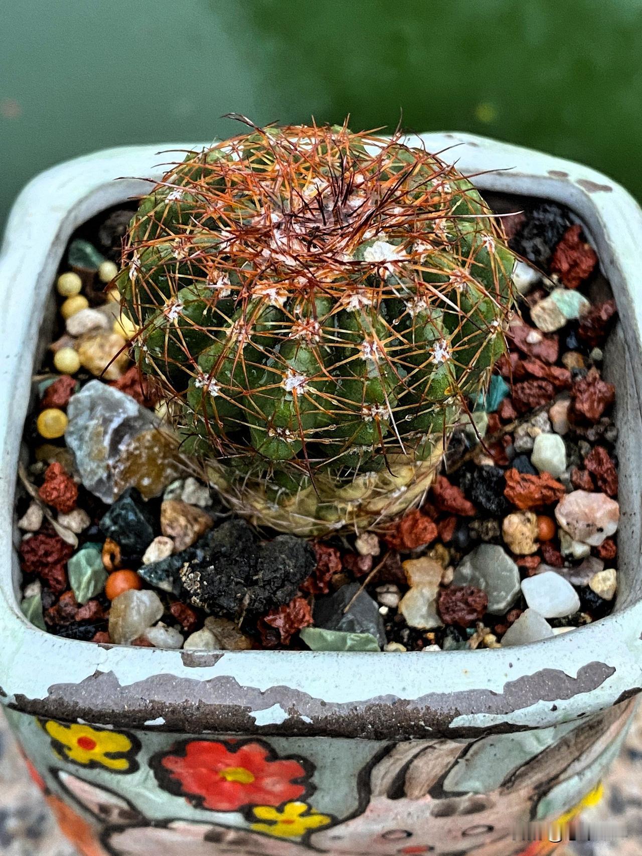 图3翠皇冠仙人球,有点缺水,仙人球大小、颜色和花盆很搭哦。