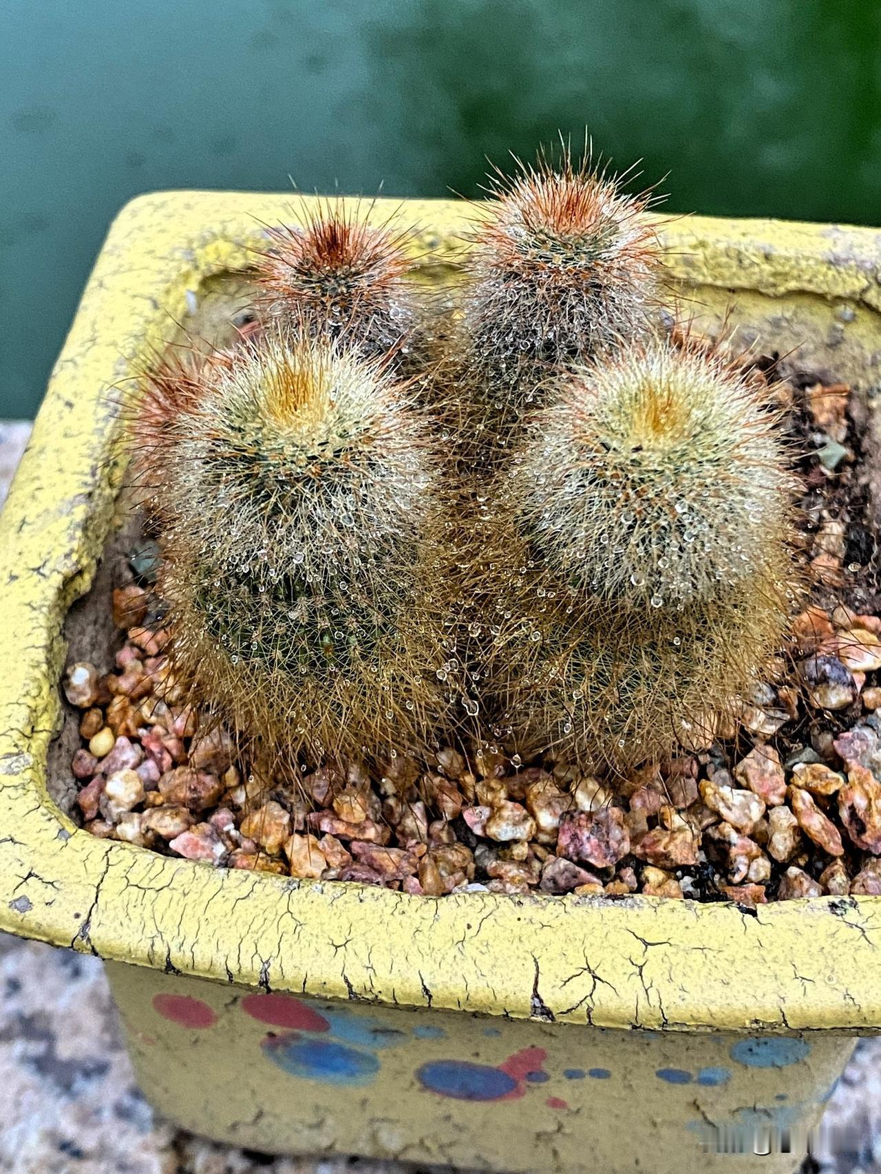 我舍不得让仙人球淋雨,下雨天总是尽量把露天养的仙人球搬回花房,一边搬花盆还要一边欣赏千姿百态的仙人球,观察一下仙人球的生长情况,有没有病虫害,我发现了一只红蜘蛛,心里真的很紧张,因为红蜘蛛对仙人球的伤害很大,马上用驱虫药。