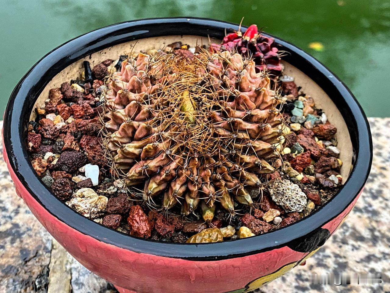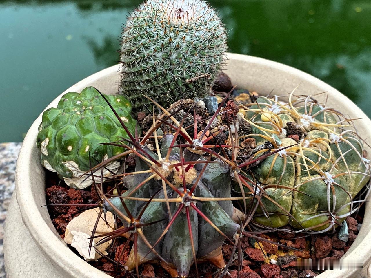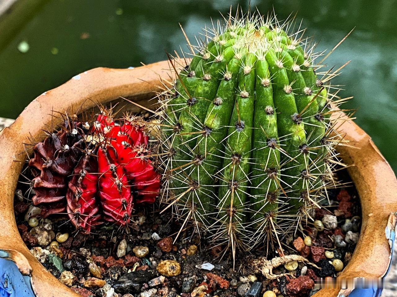 我还发现了一个有趣的问题,种植仙人球选择花盆的大小和颜色很重要,因为仙人球很聪明,你给多少大小的花盆,几年之后,它就长和花盆一样的大小,还有球体颜色也很接近。