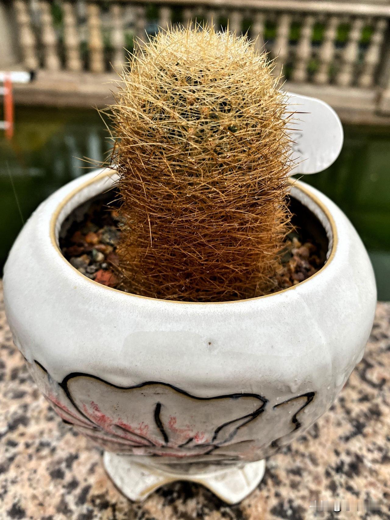 图2是金丝猴仙人球,仙人球的大小、颜色和花盆很搭哦。