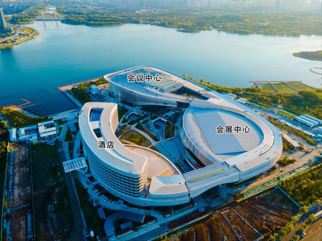 项目坐落于郑东新区龙湖北岸,坐拥中原科技城核心区位。作为省市两级重点工程,总建筑面积约31万平方米,涵盖会议中心、会展中心、酒店三大功能板块。