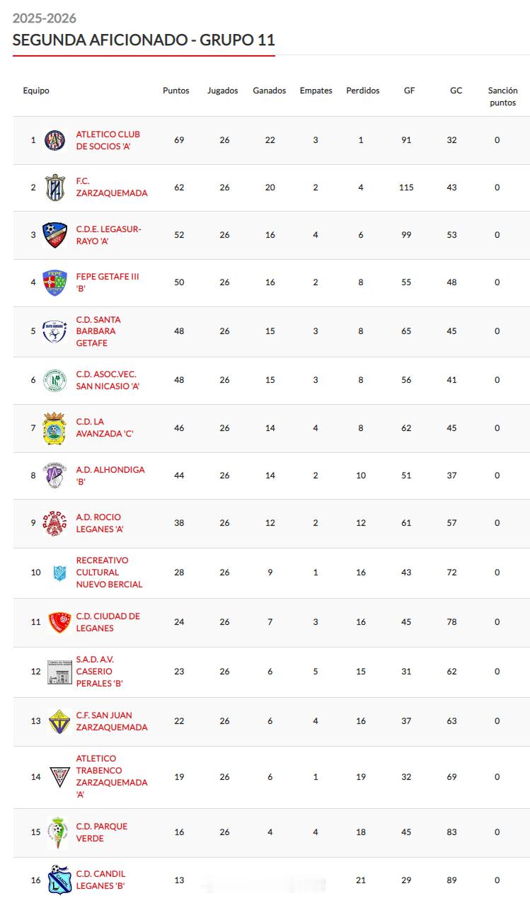乔琨皓【西班牙马德里乙级联赛(9) 第11组第26轮】2026年4月19日,莱加苏尔闪电主场0比3不敌对手,乔琨皓(2005)继续首发打满全场。