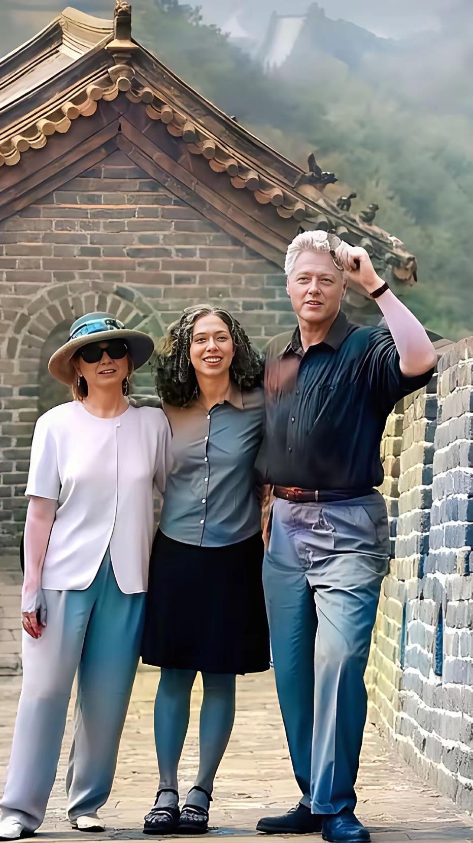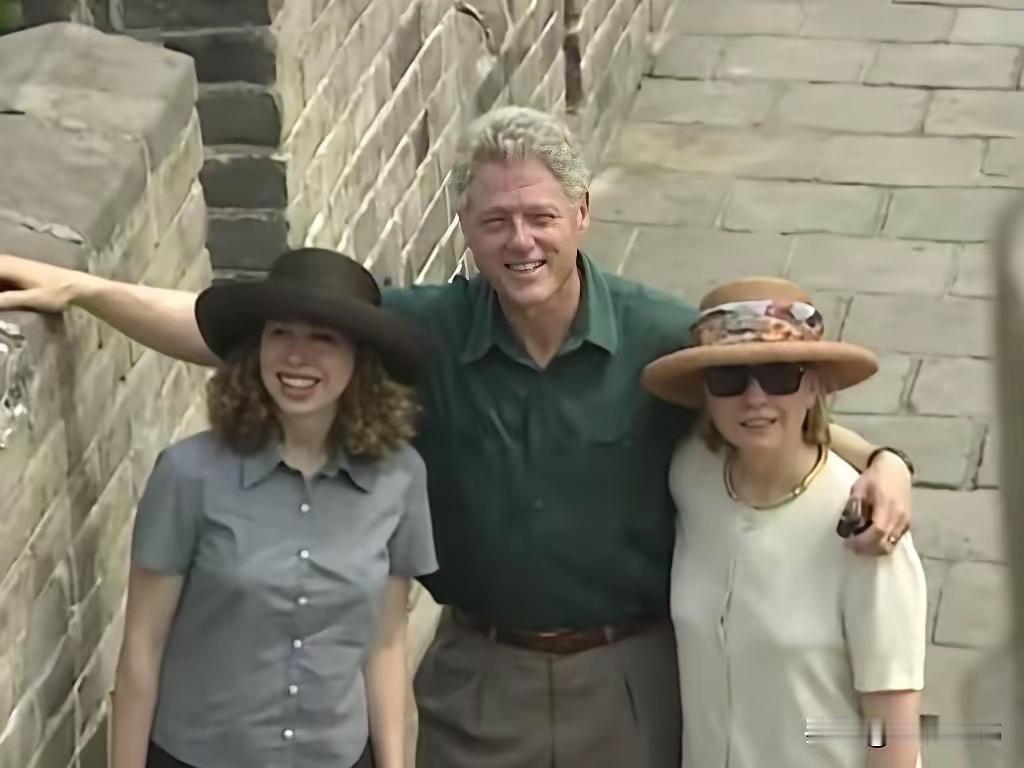 克林顿总统夫妇和女儿一起游览长城,拍了很多照片,他们玩的可开心了。