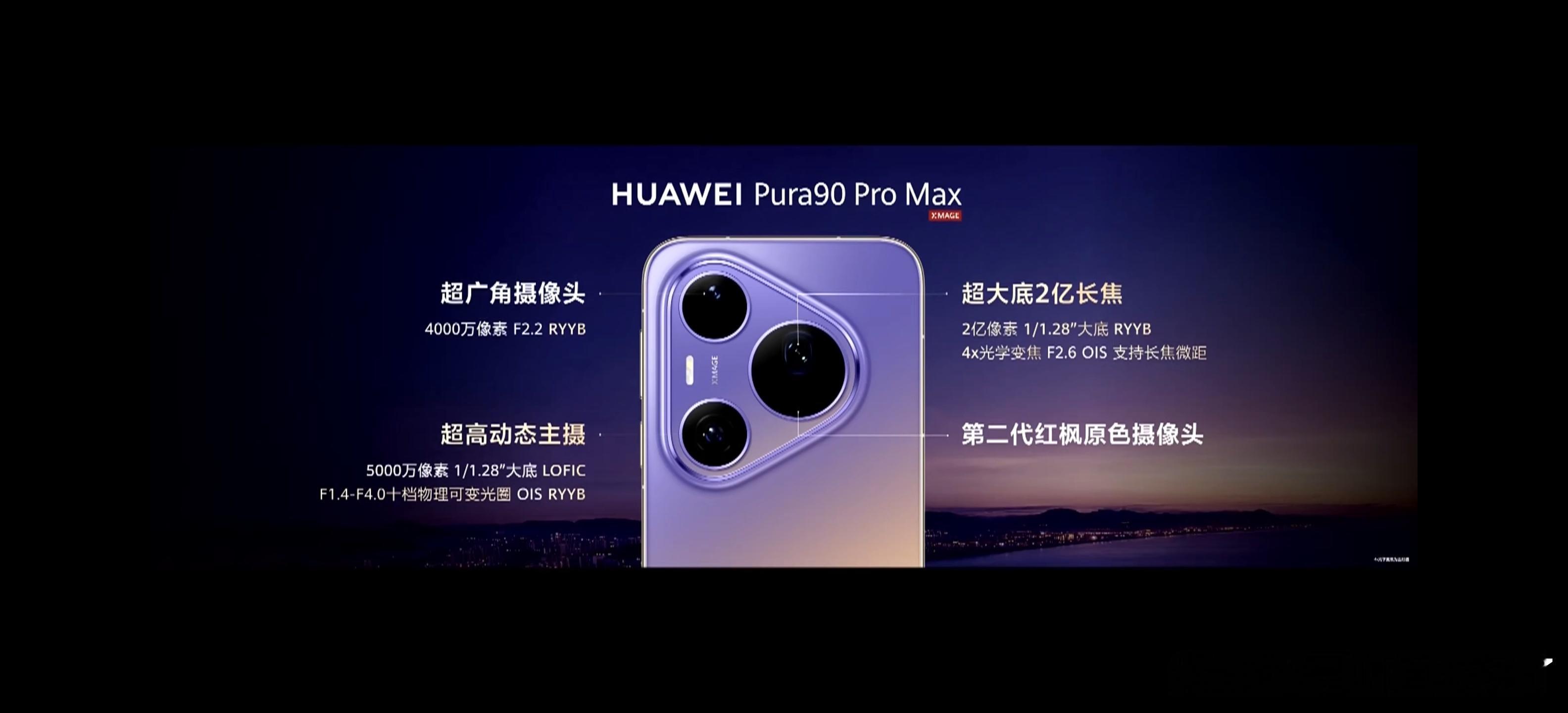 华为Pura90 Pro和Pura90 Pro Max影像模组。主摄尺寸和光圈一