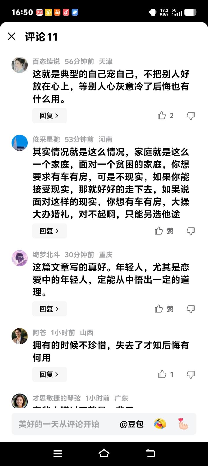 这世上最伤人的从来不是突如其来的背叛,而是把别人的好当成理所当然。林晚的后悔不是后悔伤了对方的心,是后悔再也找不到一个愿意给她洗内裤的人。她花了七年把一个真心待她的人一点点消耗殆尽,最后只剩下一句哭诉。感情从来不是一个人跑着去撑另一个人,你把对方的付出当免费的保姆服务,就别怪人家哪天醒过来转头去找真正能并肩的人。你不珍惜的真心总会有人替你珍惜,你挥霍掉的偏爱最后都会变成再也找不回来的遗憾。