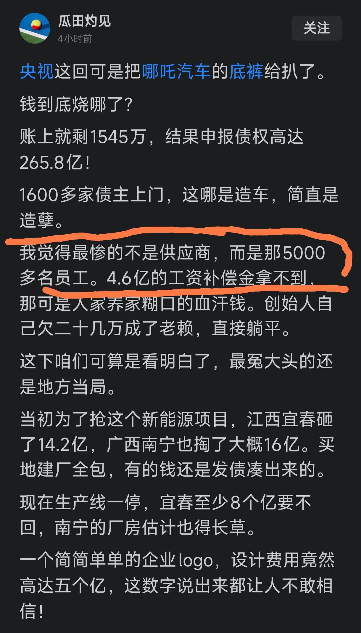 比方说,现在哪吒汽车破产,欠了5000名员工4.6亿的工资和补偿金。他要是当初把这5个亿拿来发给员工作为工资,并同时要求全员直播宣传公司产品。在这个异常发达的互联网时代,这种营销比他单纯的花5亿找广告公司宣传还要管用。因为现在互联网时代的营销是矩阵式的,起的效果是1+1大于10的效果。