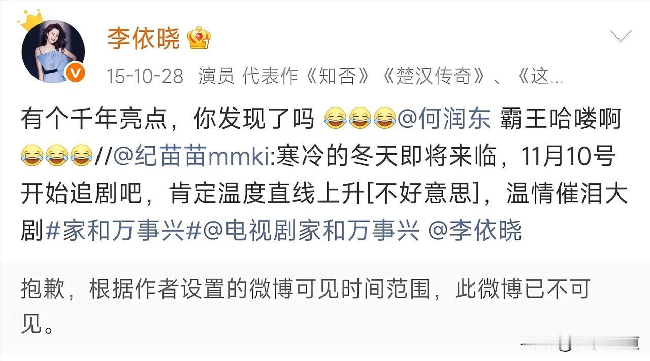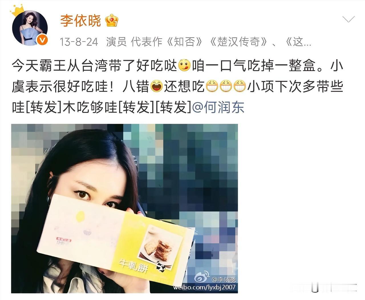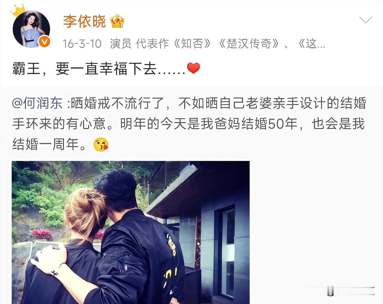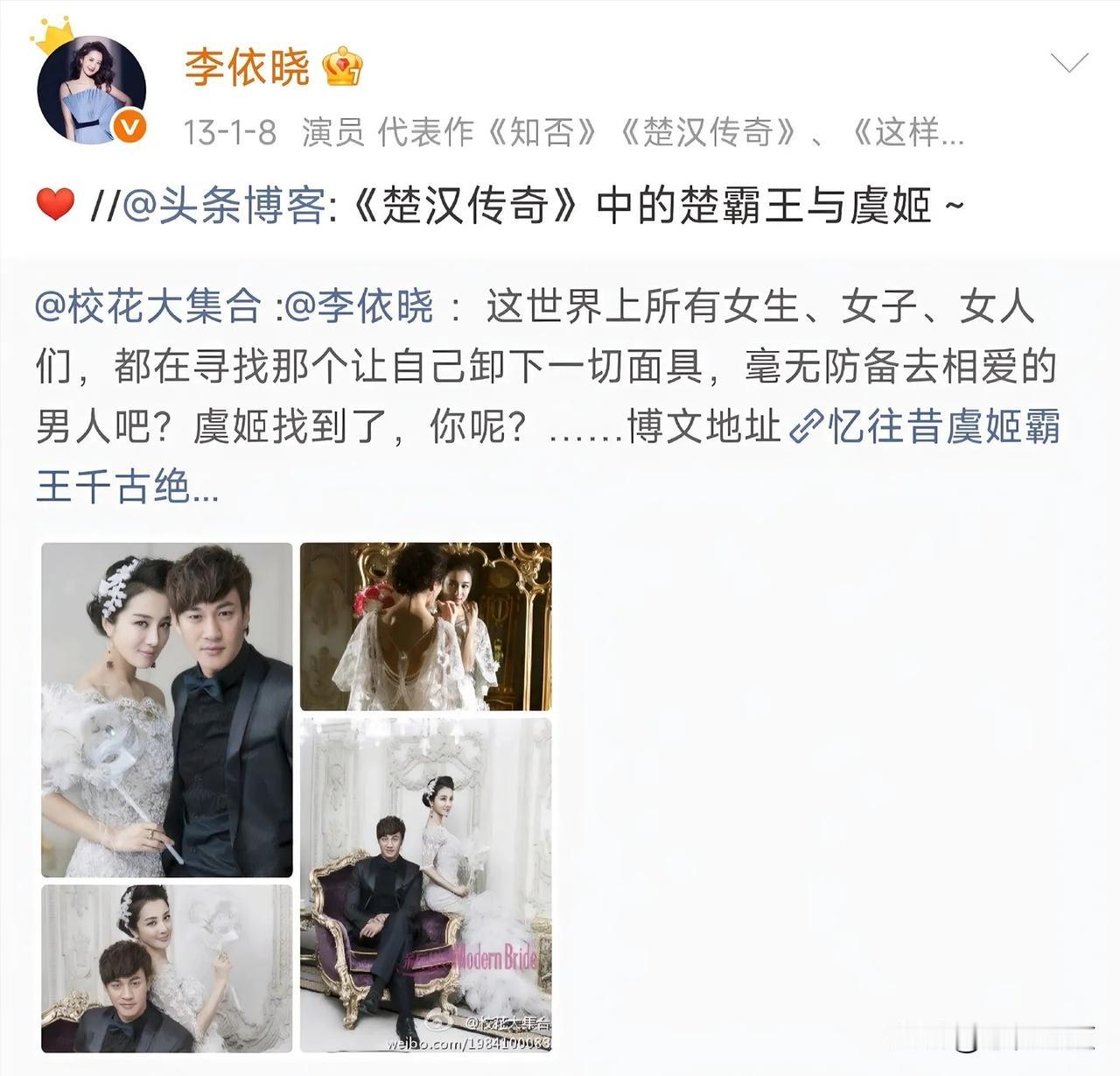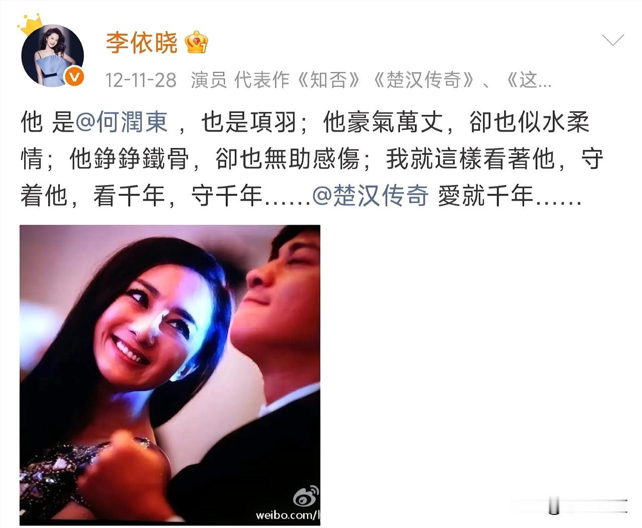 山河依旧,岁月匆匆,剧集落幕多年,世间再无楚汉之争,可虞姬的心意,却跨越十余载,年年如约而至。很少有人留意到,每年何润东生日这天,李依晓总会准时送上祝福,安静发文,浅浅寄语,一句简单的“霸王,生日快乐”,温柔又郑重,一坚持,便是十几年。