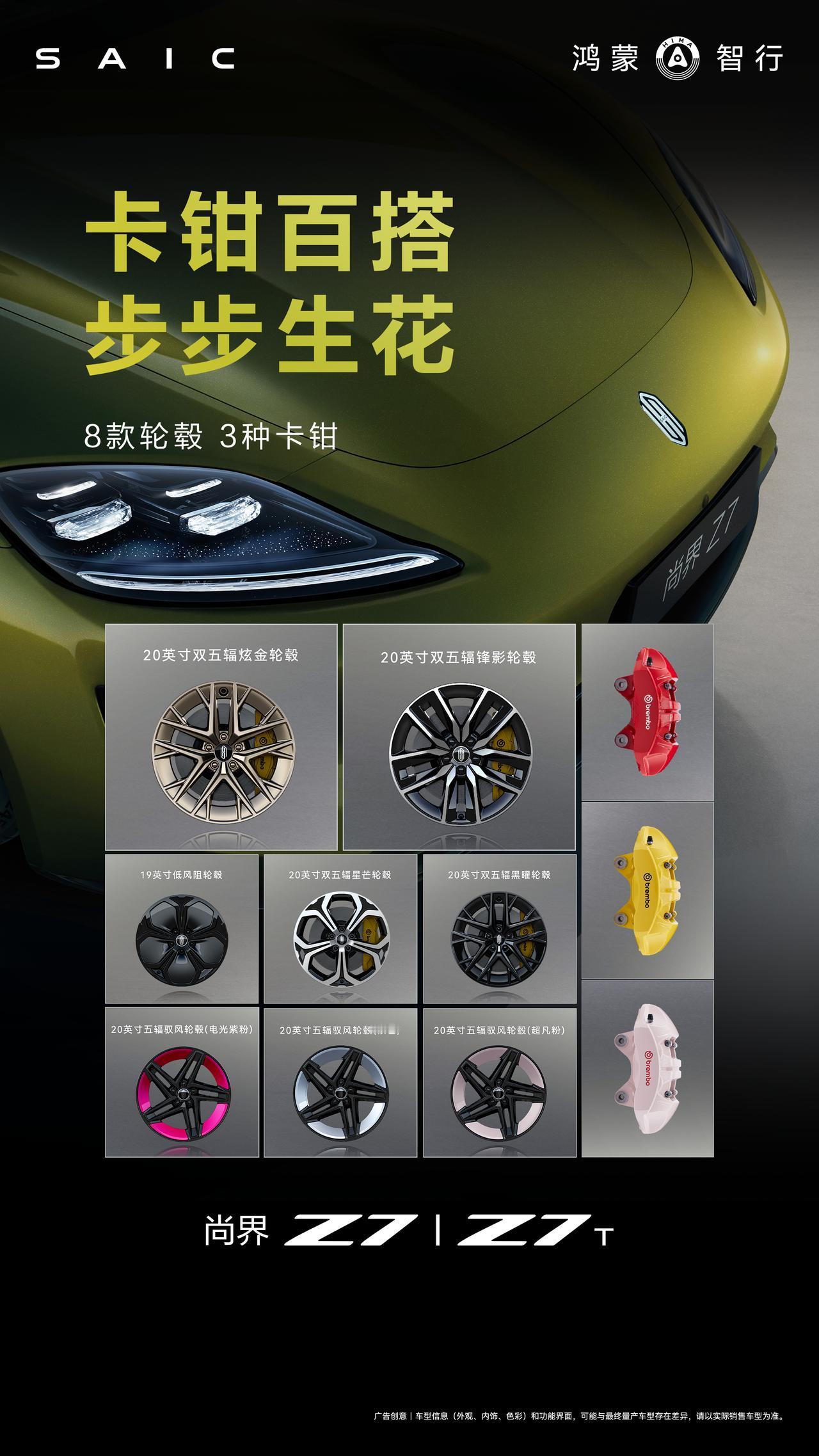 尚界Z7主打宽体低趴的动感轿跑姿态;Z7T则展现了流畅丰满的猎装造型。两车尺寸一致,长宽高为5036/1976/1465mm,轴距达3000mm。外观提供10种车漆(部分采用5C2B耐磨工艺)与8种轮圈样式可选。