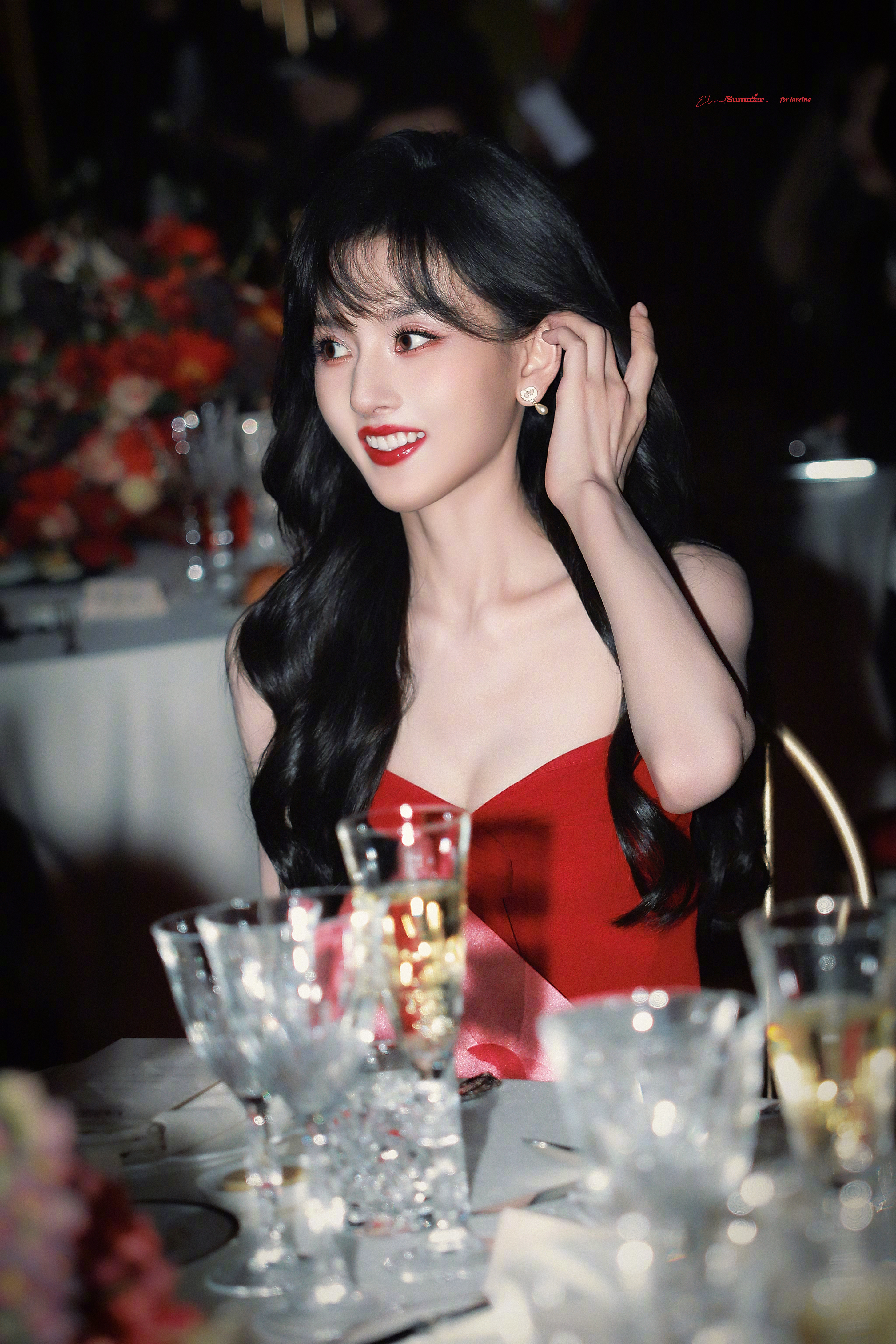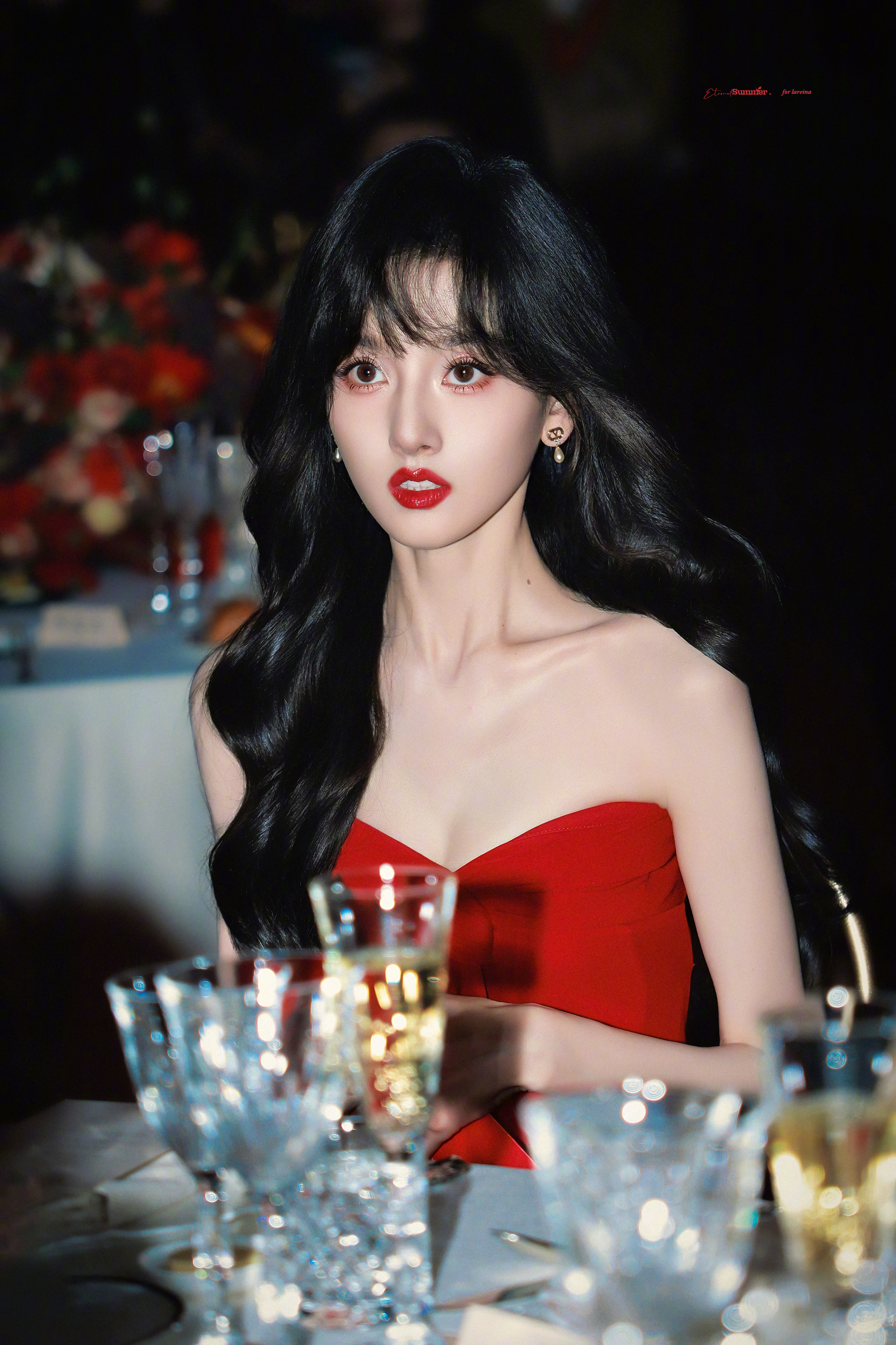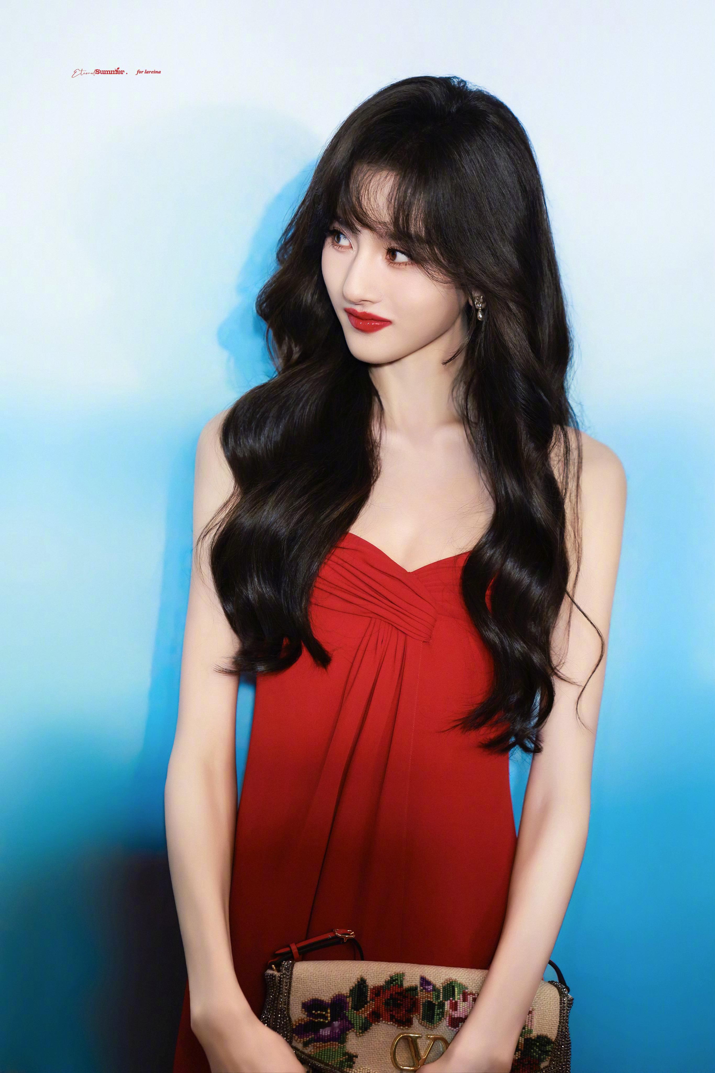 哎呦喂,宋祖儿今天杀疯了!明艳红裙配黑色大波浪,幻视贝微微本微就是太瘦了点……