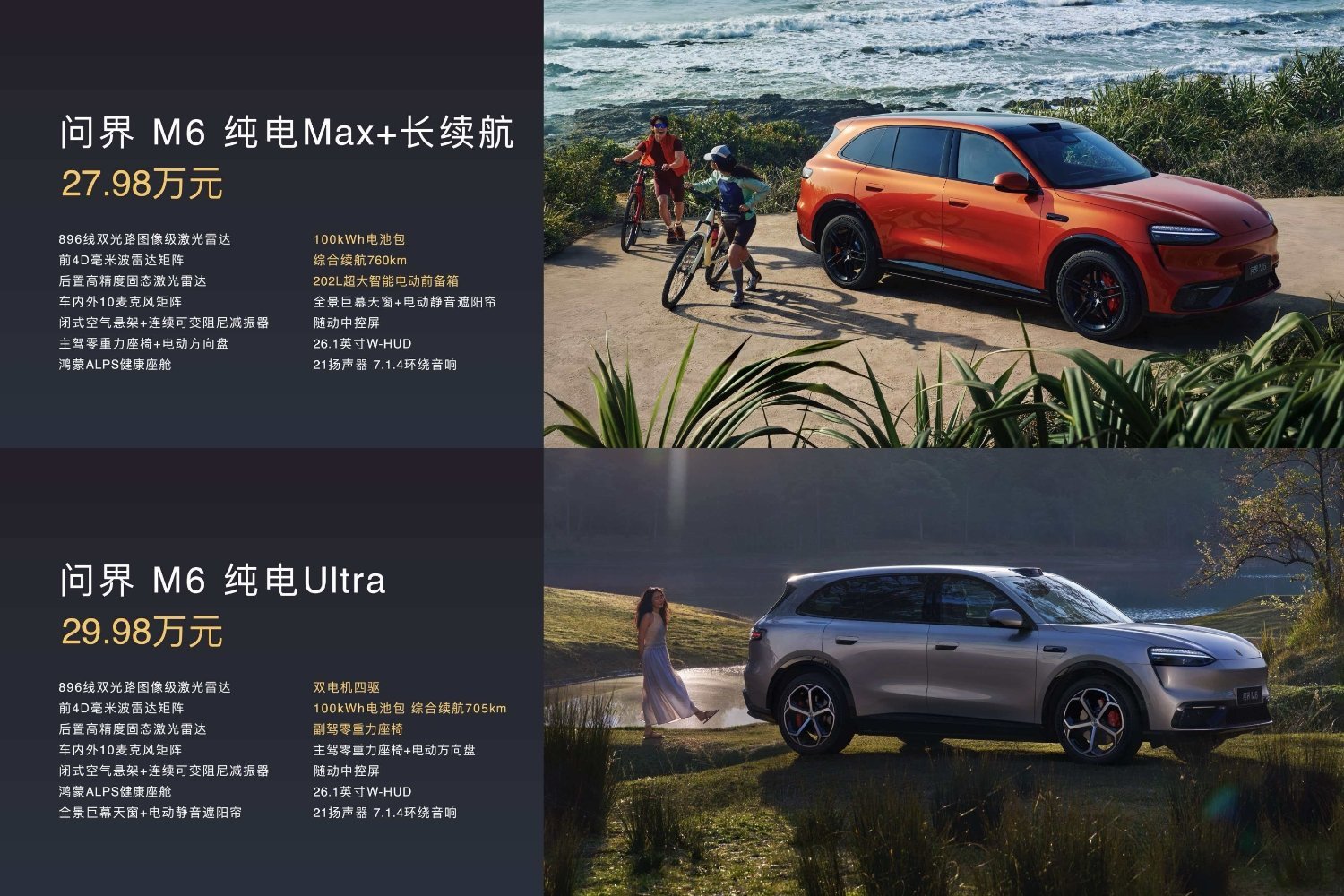 问界M6 25.98万起,增程纯电都有,上市即交付,15分钟大定突破1万!