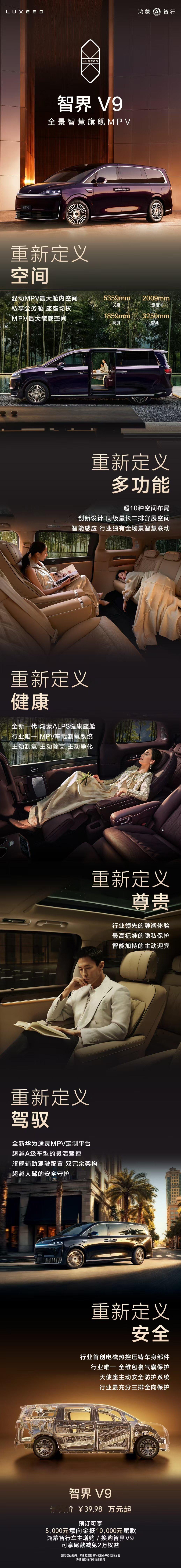 智界V9开启预售,39.98万起,5000抵10000,鸿蒙智行老车主还可享2万尾款减免;