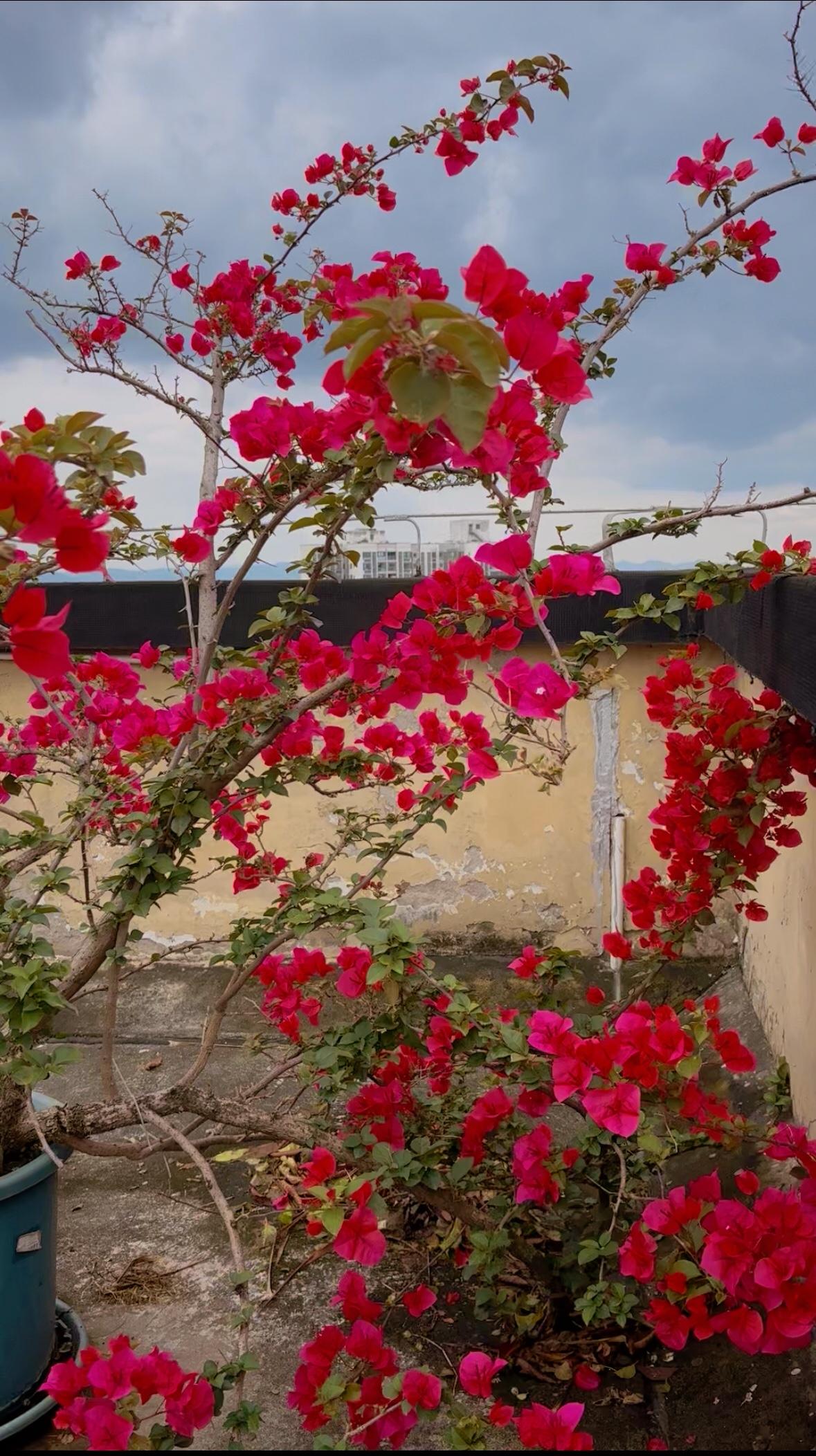 爱养花的你,可有养过三角梅?这盆养快10年了,把它放楼顶养,光照好,盆土干了浇透,偶尔施点复合肥,它照样花开不断。之前浇水勤了光长叶不开花,后来管住手,花期前喷点磷酸二氢钾,很快就满是花苞,现在花开正艳,别有一番风景。