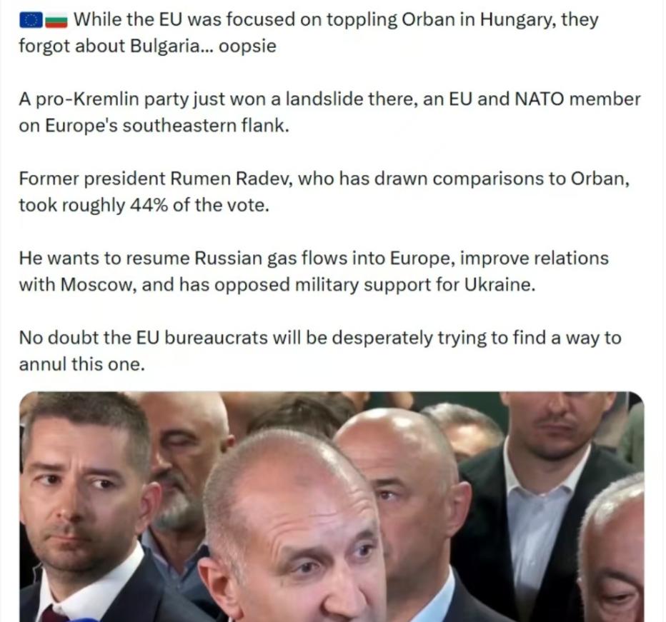 这个国家,是保加利亚。保加利亚可是欧盟和北约的成员,位置在欧洲东南边,挺重要的。可就在最近的选举里,一个亲俄罗斯的政党,以压倒性优势赢了。