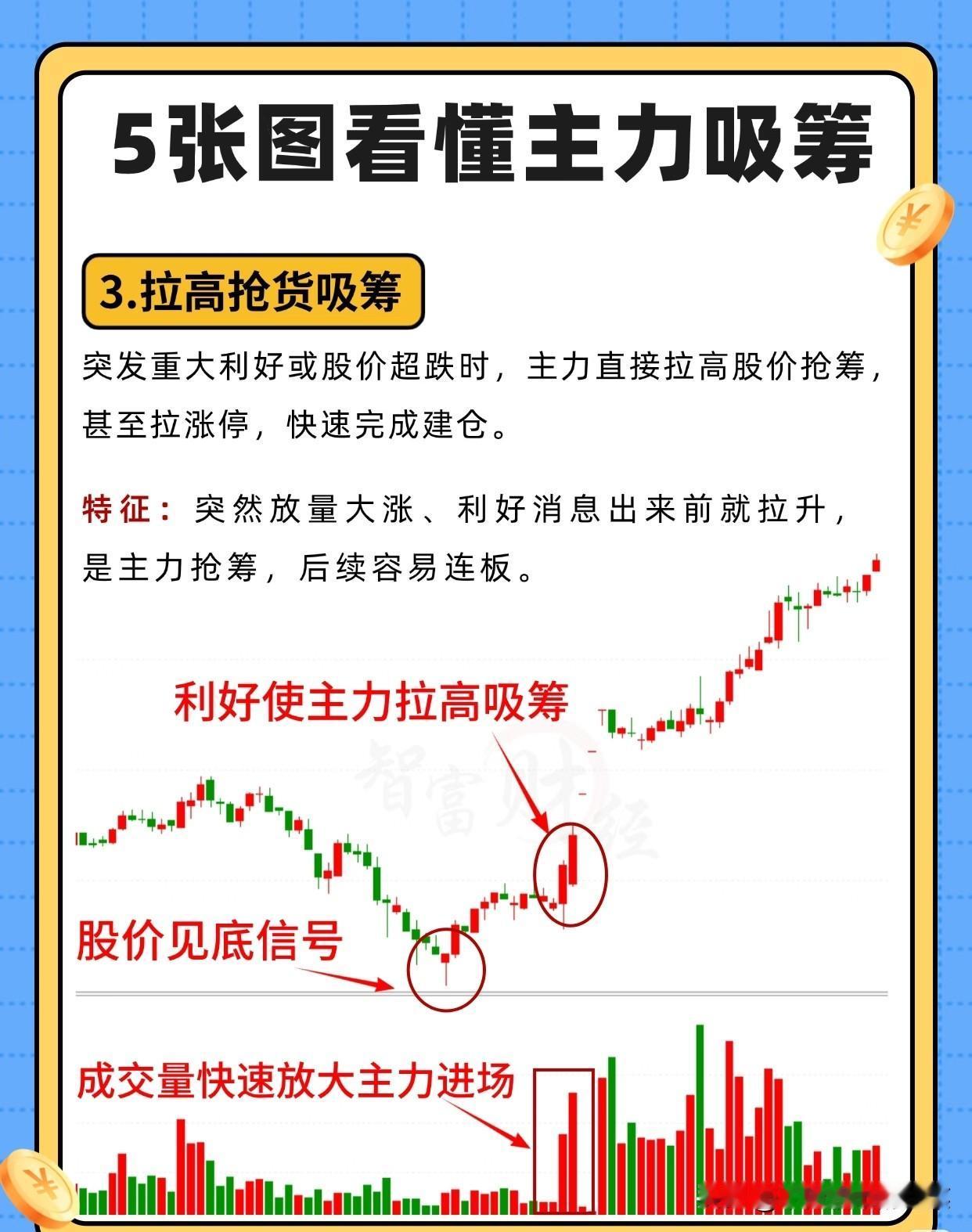 而拉高抢货吸筹则是主力的“急行军”:突发利好或股价超跌时,主力直接放量拉涨甚至涨停,快速完成建仓。这种模式往往出现在重大消息落地前,成交量突然放大,后续很容易走出连板行情,是典型的“先知先觉资金进场”信号。