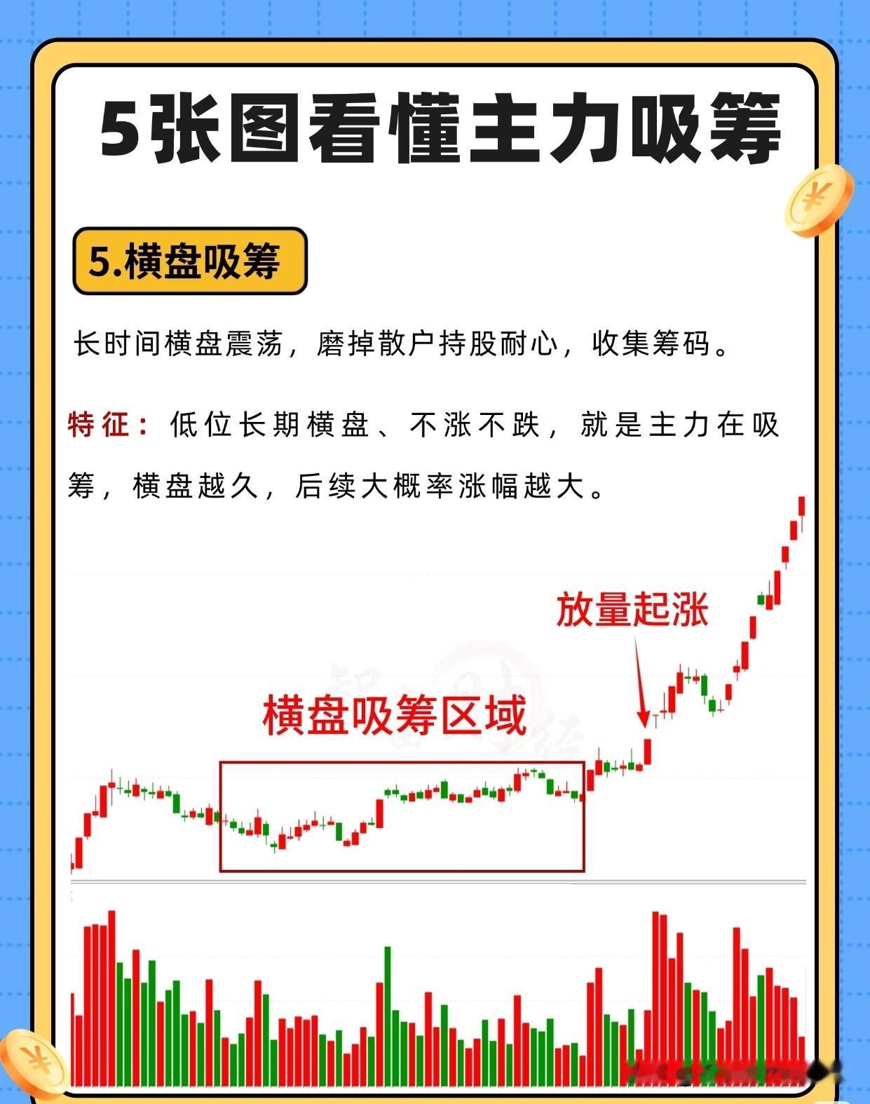 最后一种横盘吸筹最考验耐心:股价长期在低位横盘,不涨不跌,像一潭死水,却在悄悄收集筹码。老股民都懂,“横有多长,竖有多高”,这种磨人的横盘,往往酝酿着后续最猛烈的上涨。