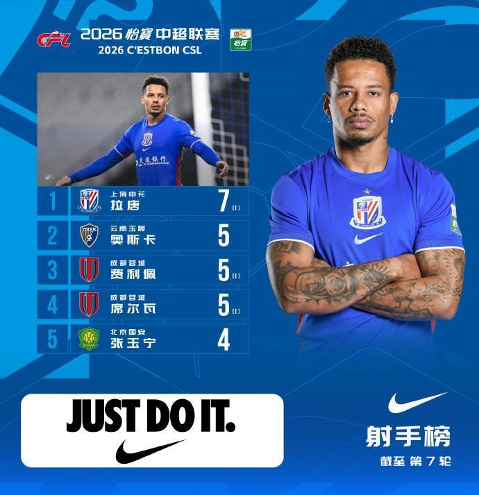 同时在射手榜上,拉唐依然7球位列第一,而打进5球的三人中有两个成都蓉城的球员,可见成都蓉城赢球也成了必然!本土球员中国进球最多的是国安的张玉宁,打进了4个。特别要提一下的是重庆铜梁龙的陈纯新已经连续3场比赛进球了,你说他运气好,不如说他更有头脑了!