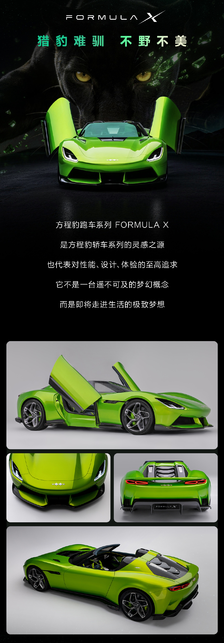 方程豹Formula X,按照传统标准来说就是标准的敞篷超跑,虽然现在还只是“方程S系列的设计图腾”,但确实有量产的可能。