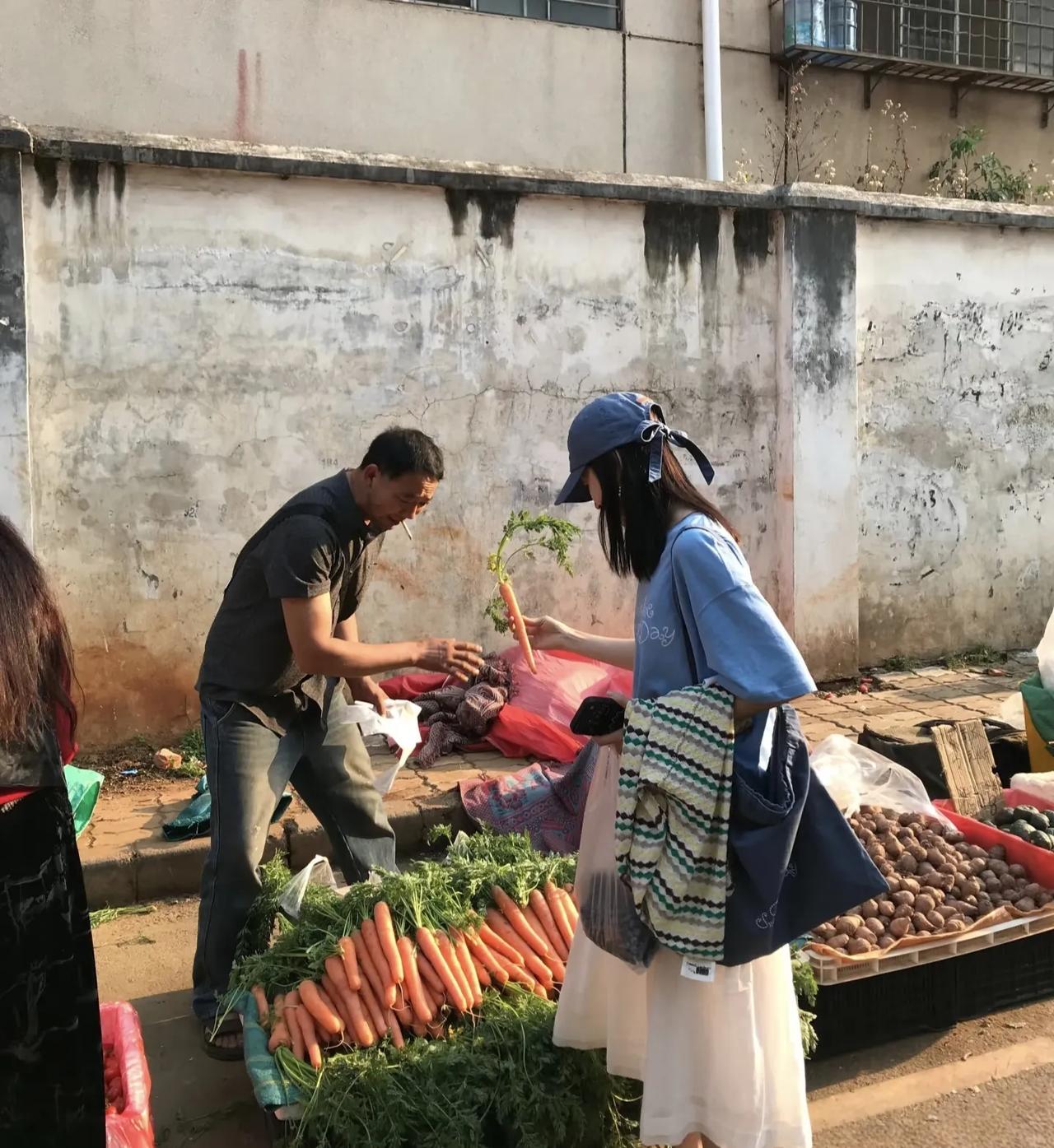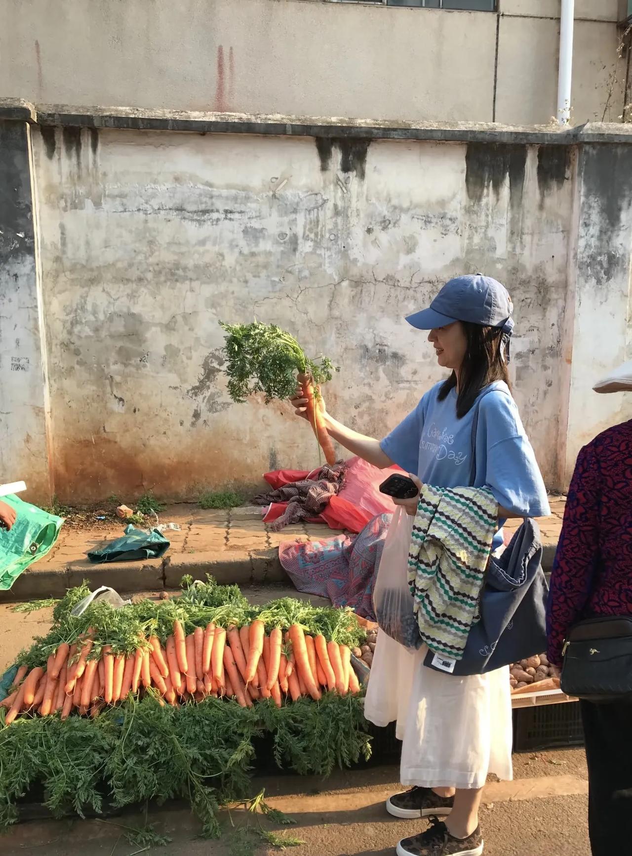 谁能想到,46岁的董洁会出现在烟火气十足的云南菜市场买菜呀~