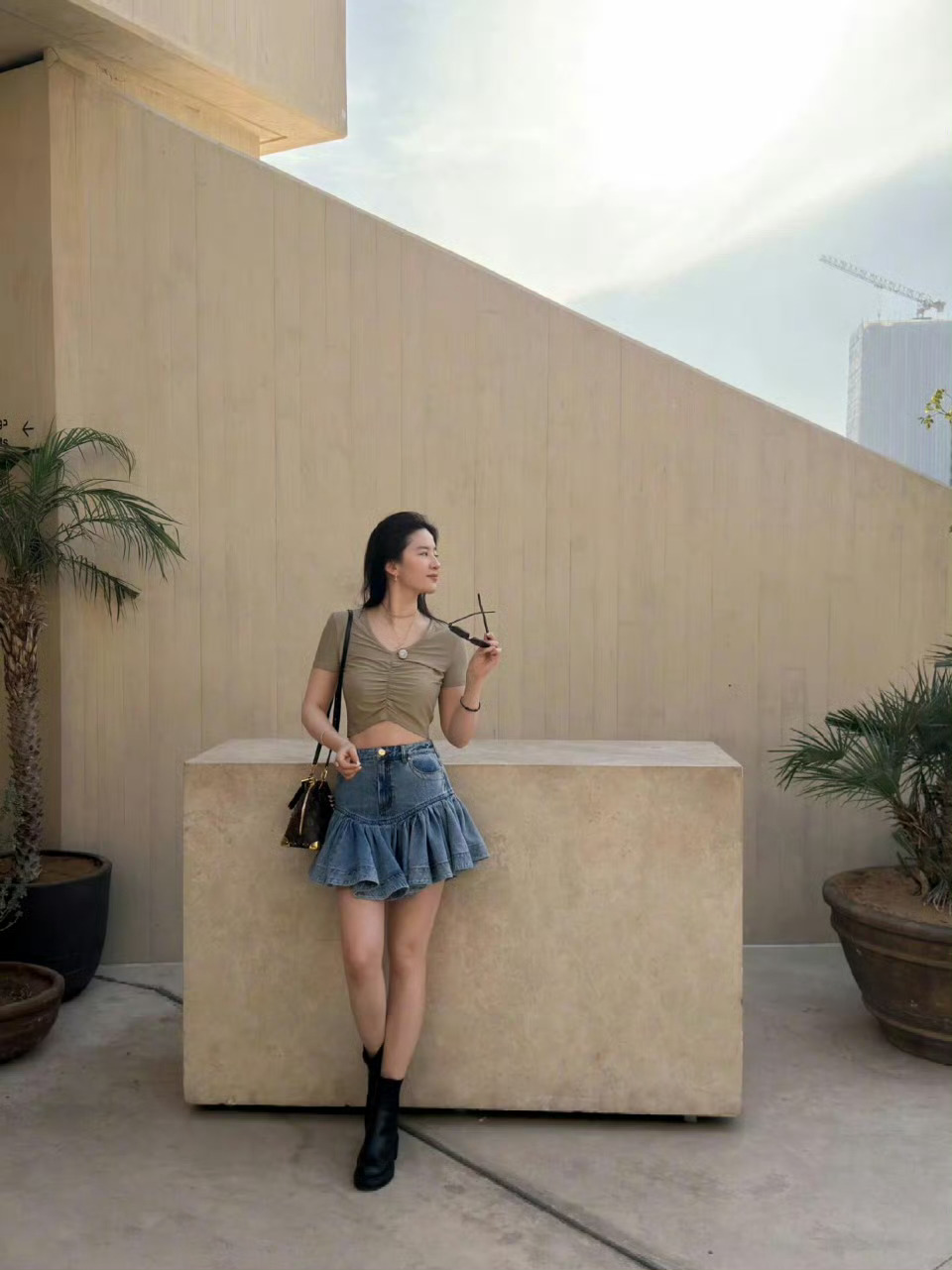 刘亦菲估计头都大了,拍个美照结果不小心被镜子出卖了身材