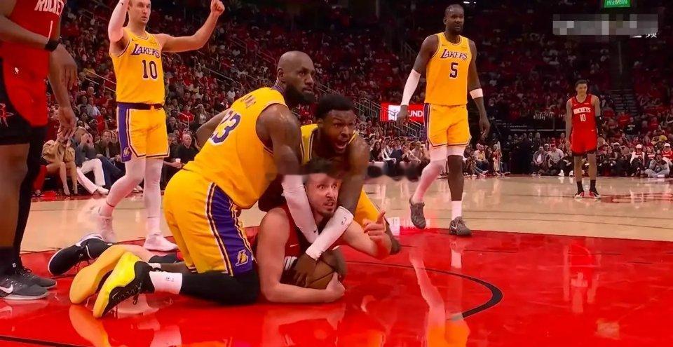 湖人112比108击败火箭 在今天湖人icon客场挑战火箭的季后赛首轮G3中,发生了让人热泪盈眶的一幕。当时比赛进行到了第四节的八分多钟,申京在持球强杀篮下的时候摔倒在地,此时只见湖人巨星詹姆斯icon和爱子布朗尼icon如饿虎扑食一般和申京拼抢球权,最终裁判吹罚了詹姆斯和申京的跳球。