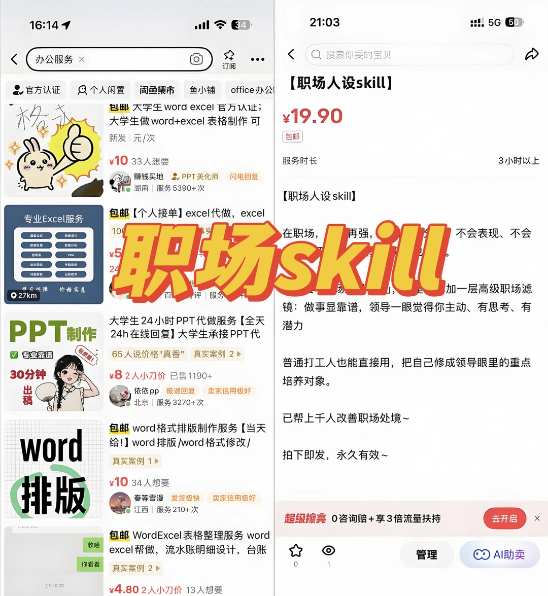 这会让你越发觉得,闲鱼就是一个巨大的skill市场。