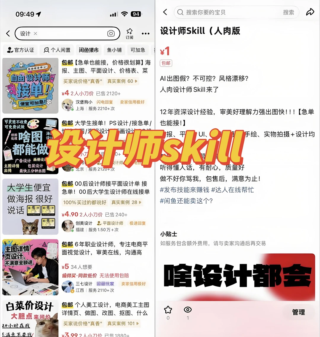 但不知道有人发现没,闲鱼其实早就是最接地气的skill市场了。