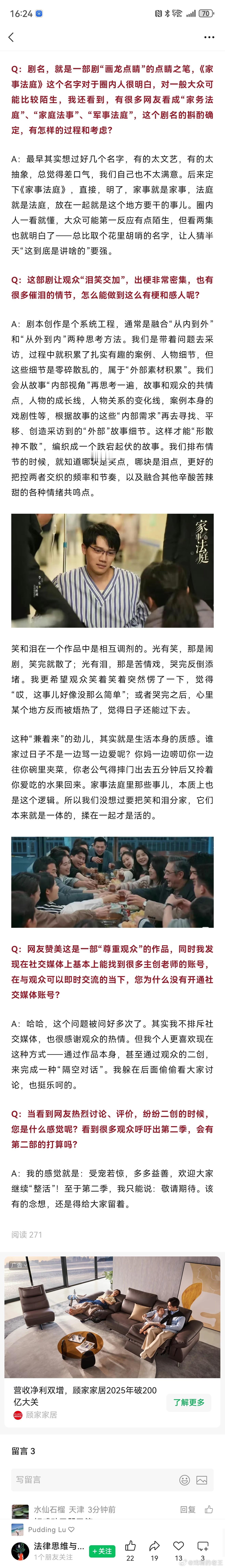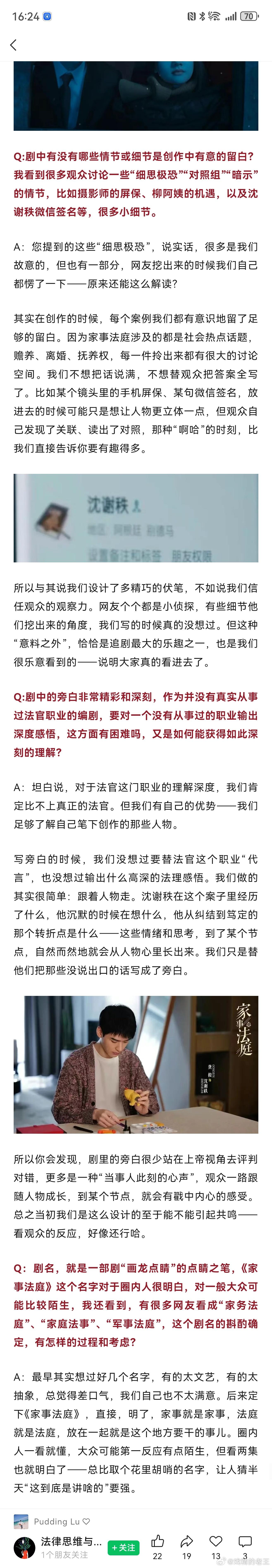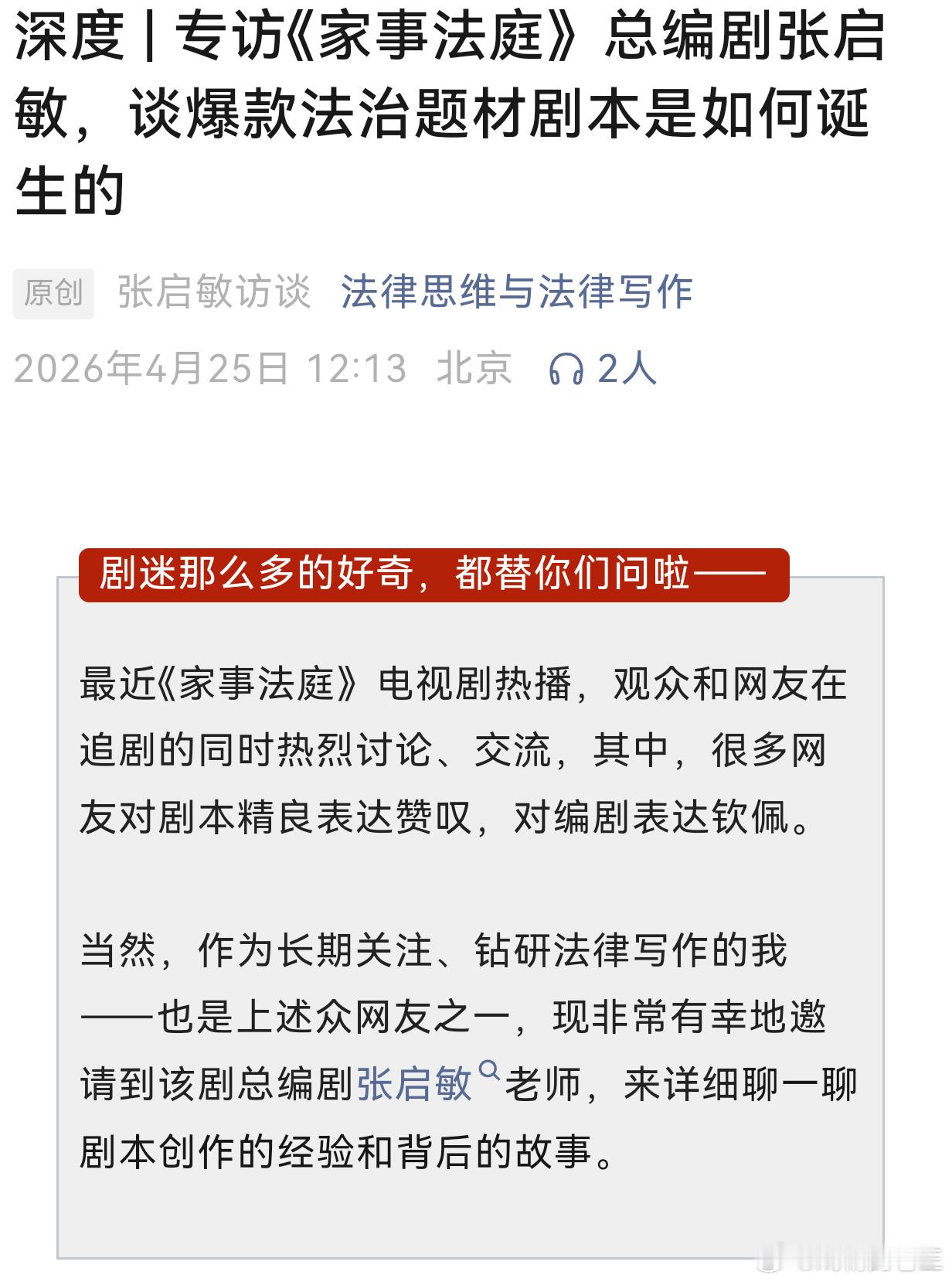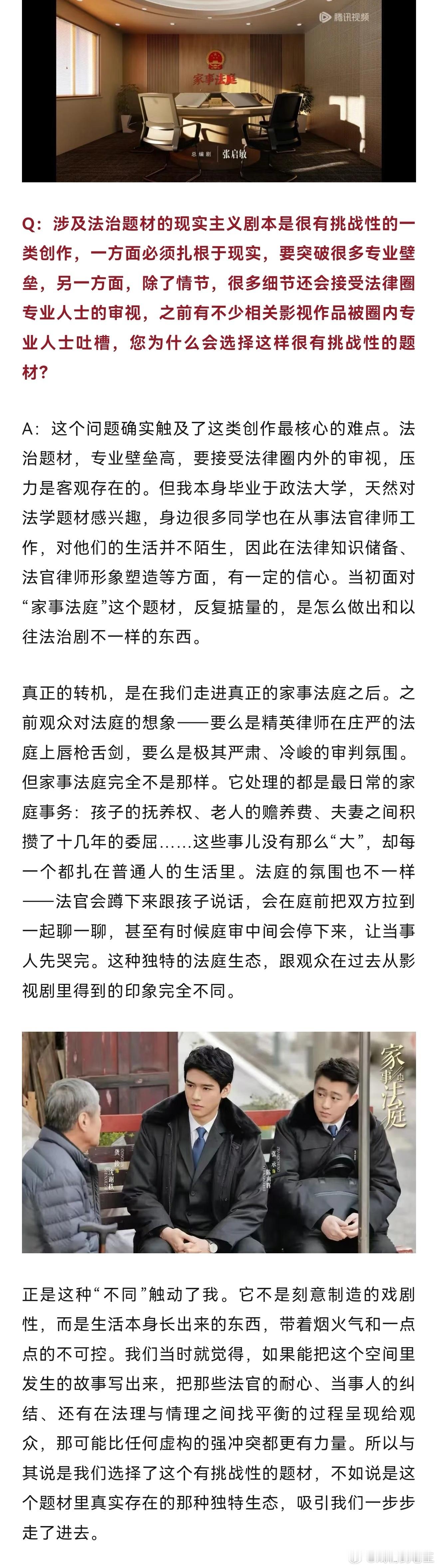 《家事法庭》总编剧的深度专访,谈到这部爆款法治好剧的幕后故事。剧情写实又温暖,传