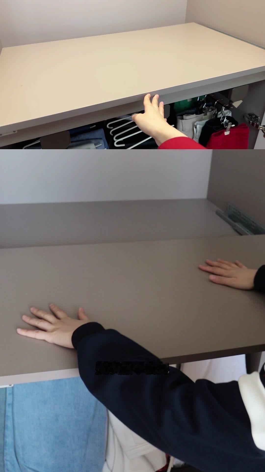 👗衣柜里藏的熨衣板?超省空间!原来衣柜还能这样改造!推拉式隐藏熨衣板真的绝了,纵向高度不到5厘米,成本100多块就能搞定,比买折叠款的划算太多!