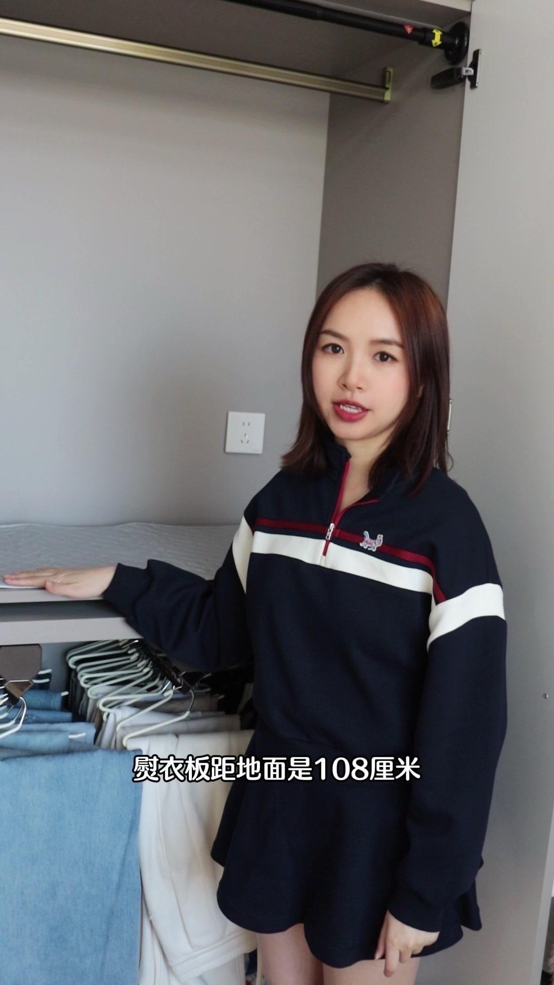 4️⃣高度参考:安装后距地面108cm,不用弯腰熨衣服,颈椎超舒服。想要更低的话可以装在层板下方,避开裤架区域就行~
